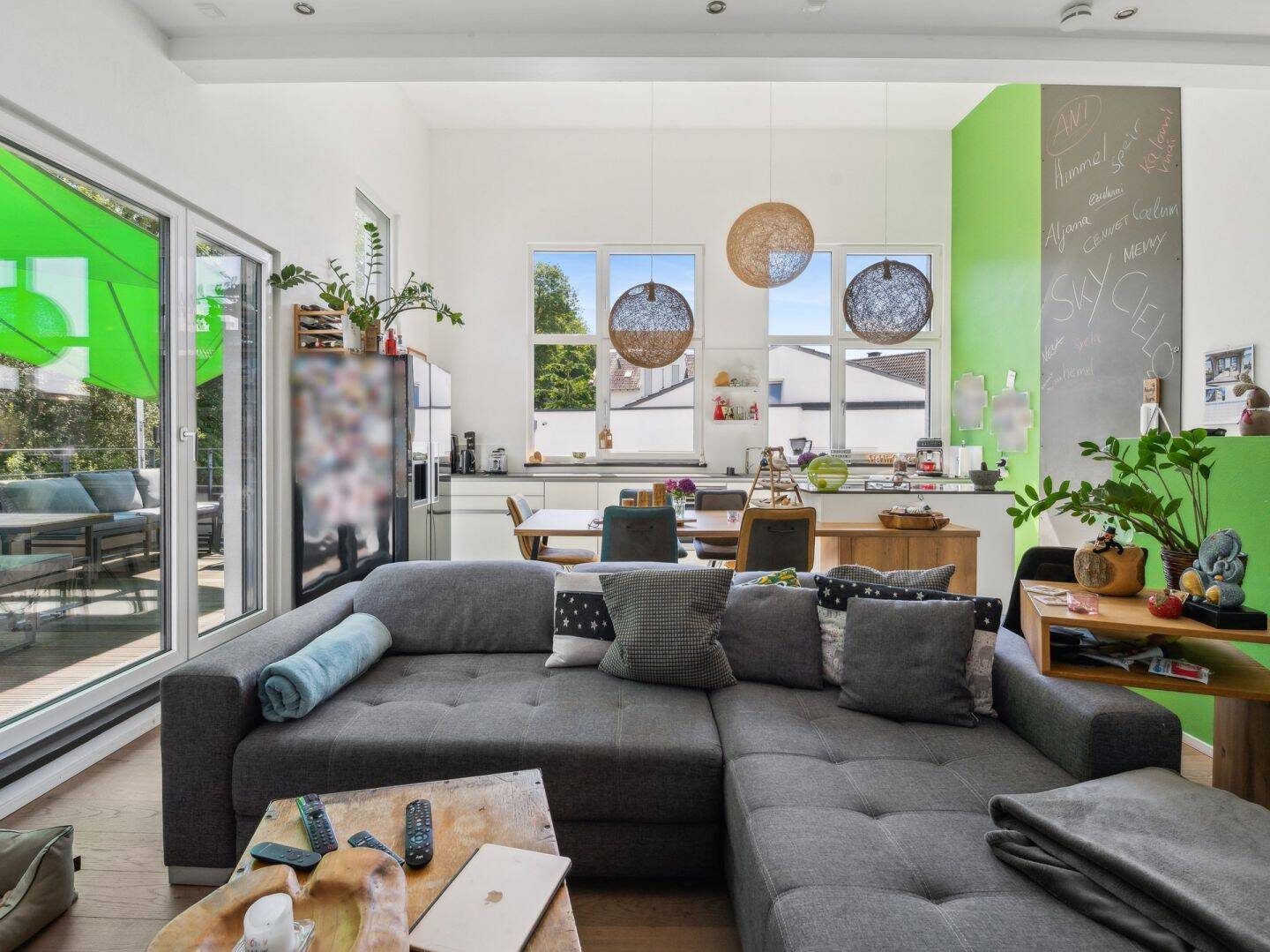 Energieausweis ist in Arbeit. Für das hier vorliegende Objekt gibt es aktuell keinen gültigen Energieausweis. Dieser ist bereits vom Eigentümer beantragt.Ab jetzt beginnt Ihr Urlaub schon zu Hause! Bei der von uns angebotenen Immobilie handelt es sich um eine wunderschöne Penthouse-Wohnung mit einem tollen Blick ins Grüne.Das Haus ist ca. aus dem Jahr 2014 und wird aktuell von 3 Parteien bewohnt. In der von uns angebotenen Wohnung wohnt aktuell der Eigentümer selbst, dieser wird jedoch nach Fertigstellung seines Bauvorhabens ausziehen.Diese Oase hat insgesamt ca.112 m² Wohnfläche und bietet ein großzügiges und tolles Wohnambiente.Die Penthouse-Wohnung besteht aus 2 Etagen, die mit einer Treppe verbunden sind. Die untere Ebene besteht aus 1 Schlafzimmer, 1 Homeoffice und einem Hauswirtschaftsraum. Im Übergang vom Flur zum Schlafzimmer befindet sich ein nicht separat abgetrennter Ankleidebereich mit Einbauschränken.Abgeschlossen wird diese Ebene durch ein hochwertiges Badezimmer mit Dusche sowie einem auf dieser Ebene befindlichen Gäste-WC.Auf der zweiten Etage erwartet Sie ein großzügiger Wohnbereich mit einer wunderschönen und offen gestalteten Küche. Vom Wohnbereich aus gelangen Sie auch auf die Dachterrasse, welche Ruhe und Erholung nach stressigen Tagen bietet. Anliegend gibt es noch einen weiteren Raum, der zur Lagerung der Terrassenutensilien dient.In der kompletten Wohnung befindet sich eine Fußbodenheizung. Im Wohnbereich in der oberen Ebene befindet sich zusätzlich ein Holzofen.Es stehen 2 Stellplätze zur Verfügung.Diese Immobilie eignet sich ideal für Selbstnutzer, ist aber auch für Kapitalanleger interessant und nutzbar.Zu diesem Objekt haben wir für Sie einen 360-Grad-Immobilienrundgang erstellt. Nutzen Sie die Gelegenheit und schauen Sie sich ruhig schon einmal um. Den Link zum Rundgang können Sie gerne bei uns nach der Legitimation, sprich Down-Load des Exposés abfordern.