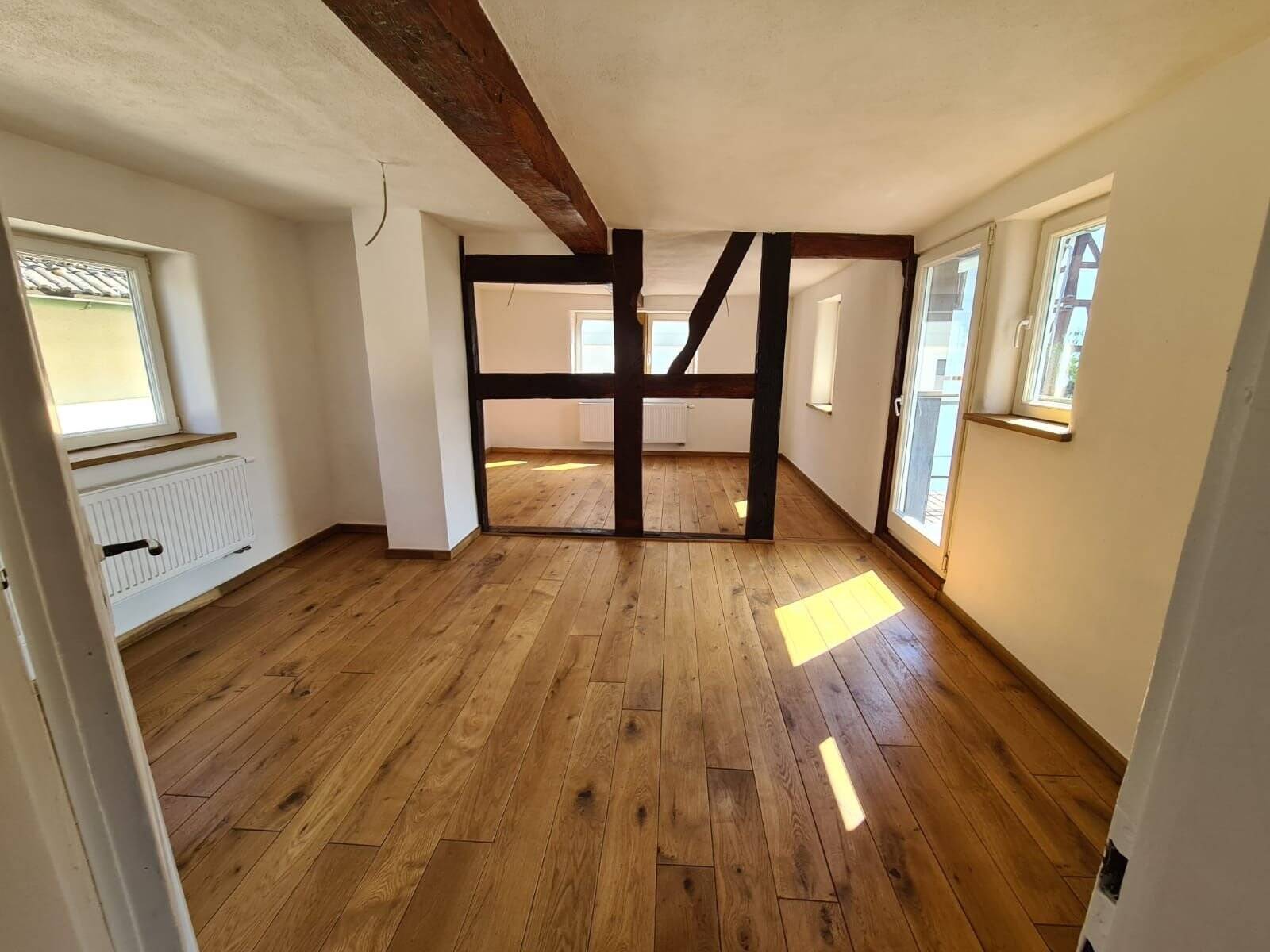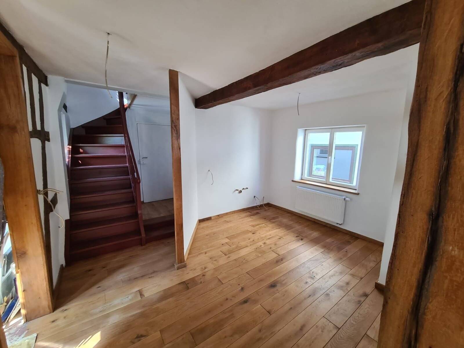 Objektbeschreibung Dieses Fachwerkhaus wurde umfangreich renoviert, und es müsste noch ein bisschen was investiert werden, um die Immobilie fertigzustellen!Das kleine, aber feine Häuschen befindet sich unterhalb des Schlosses, in zentraler Lage, nur ca. 3 Minuten fußläufig vom Schloss und vom Marktplatz entfernt.Nutzen Sie die Immobilie selbst oder vermieten Sie diese wochenweise an die vielen Touristen, die jährlich nach Braunfels kommen und gerne ein paar Tage dort Urlaub machen. Unter dem Motto: Wohnen wie früher im „Raumklima eines Fachwerkhauses“ – das liegt wieder im Trend und wird sehr gerne genutzt!Dieses Knusperhaus ist mit viel Liebe zum Detail von 2020 bis 2024 fast komplett renoviert worden. Die Wände sind mit Lehmputz versehen, wodurch ein sehr angenehmes, natürliches und atmungsaktives Raumklima in dem Haus entstanden ist. Die Holzbalken sind mit sehr viel Liebe restauriert, und auf den Fußböden wurde Eichenparkett verlegt. Neue isolierverglaste Holzfenster sind seit 2016 eingebaut. Das komplette Schieferdach ist 2020 neu eingedeckt worden. Die Elektrik wurde 2011/2012 erneuert, und eine neue Brennwerttherme ist seit 2021 eingebaut. Dabei wurden auch die Wasser- und Abwasserleitungen erneuert.Die Fassade, der Eingangsbereich und das Badezimmer müssten noch fertiggestellt werden. Im Dachgeschoss könnte ggf. noch ein schönes Zimmer entstehen.Vereinbaren Sie einen Besichtigungstermin und machen Sie sich selbst ein Bild von diesem Knusperhaus, bevor es zu spät ist! Raumaufteilung Erdgeschoß: Küche kombiniert mit Wohnbereich, das Badezimmer muss noch fertig gestellt werden und Flur. 1. Stock: ein Schlafzimmer und ein Wohnzimmer mit Zugang zum Balkon Wfl. ca. 60 m².Dachgeschoß kann noch ausgebaut werden.Der Keller bietet neben Heizungsraum noch genügend Platz und Lagerfläche ca. 30 m²1 Stellplatz direkt vor der Immobilie ist vorhanden!