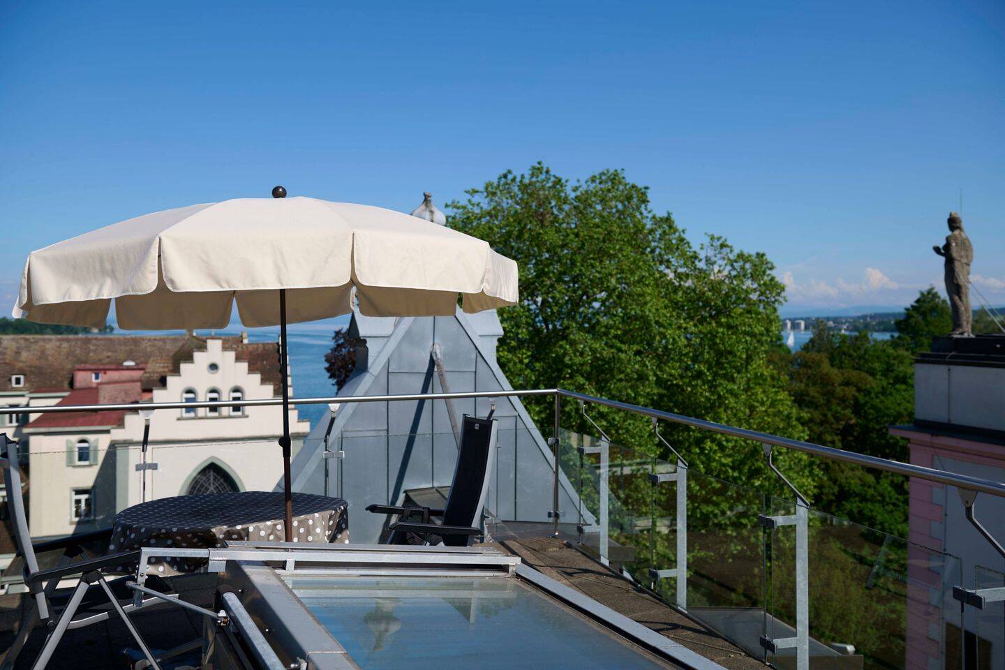 Entdecken Sie diese exquisite Maisonette-Wohnung in einem repräsentativen, historischen und denkmalgeschützten Anwesen in Konstanz, die gehobenen Wohnkomfort mit unverwechselbarem historischem Flair vereint. Auf ca. 106,56 m² Wohnfläche erwarten Sie drei Zimmer mit einer zusätzlichen Galerie-Ebene, zwei Schlafzimmer, zwei Bäder sowie ein Hauswirtschafts- und Ankleideraum. Die Räume erstrecken sich über zwei Etagen und eine Splitlevel-Galerie, wodurch ein offenes, großzügiges Wohngefühl entsteht. Ein besonderes Highlight ist die rund 17,18 m² große Dachterrasse, die nicht in der Wohnfläche berücksichtigt ist und einen privaten Rückzugsort über den Dächern bietet.Die Wohnung befindet sich im 3. Ober- bzw. Dachgeschoss eines repräsentativen Gebäudes mit geschlossenem, charmantem Innenhof und einer Grundstücksfläche von ca. 1.565 m². Zuletzt im Jahr 1999 modernisiert, präsentiert sie sich in einem zeitlosen und gepflegten Zustand. Hochwertige Bodenbeläge aus Parkett, Fliesen und Granit unterstreichen das elegante Ambiente. Für zusätzlichen Komfort sorgen ein Carport im Innenhof sowie ein Aufzug, der den Zugang zu allen Etagen erleichtert. Im Untergeschoss steht ein Wasch-u. Trockenraum sowie ein Fahrradraum für alle Bewohner zur Verfügung. Das Anwesen wird durch einen Hausmeisterservice versorgt, gereinigt und gepflegt.Ein Kellerraum im UG sowie ein praktischer Abstellraum in der Wohnung bieten wertvollen Stauraum. Ergänzt wird das Wohnkonzept durch ein separates Gäste-WC und eine moderne Einbauküche. Beheizt wird die Immobilie über eine Zentralheizung mit Erdgas, die sowohl Komfort als auch Effizienz garantiert.Diese denkmalgeschützte Maisonette-Wohnung in Konstanz vereint zeitlosen Luxus, architektonisches Erbe und moderne Annehmlichkeiten - ein einzigartiges Zuhause mit Charakter und Seltenheitswert.