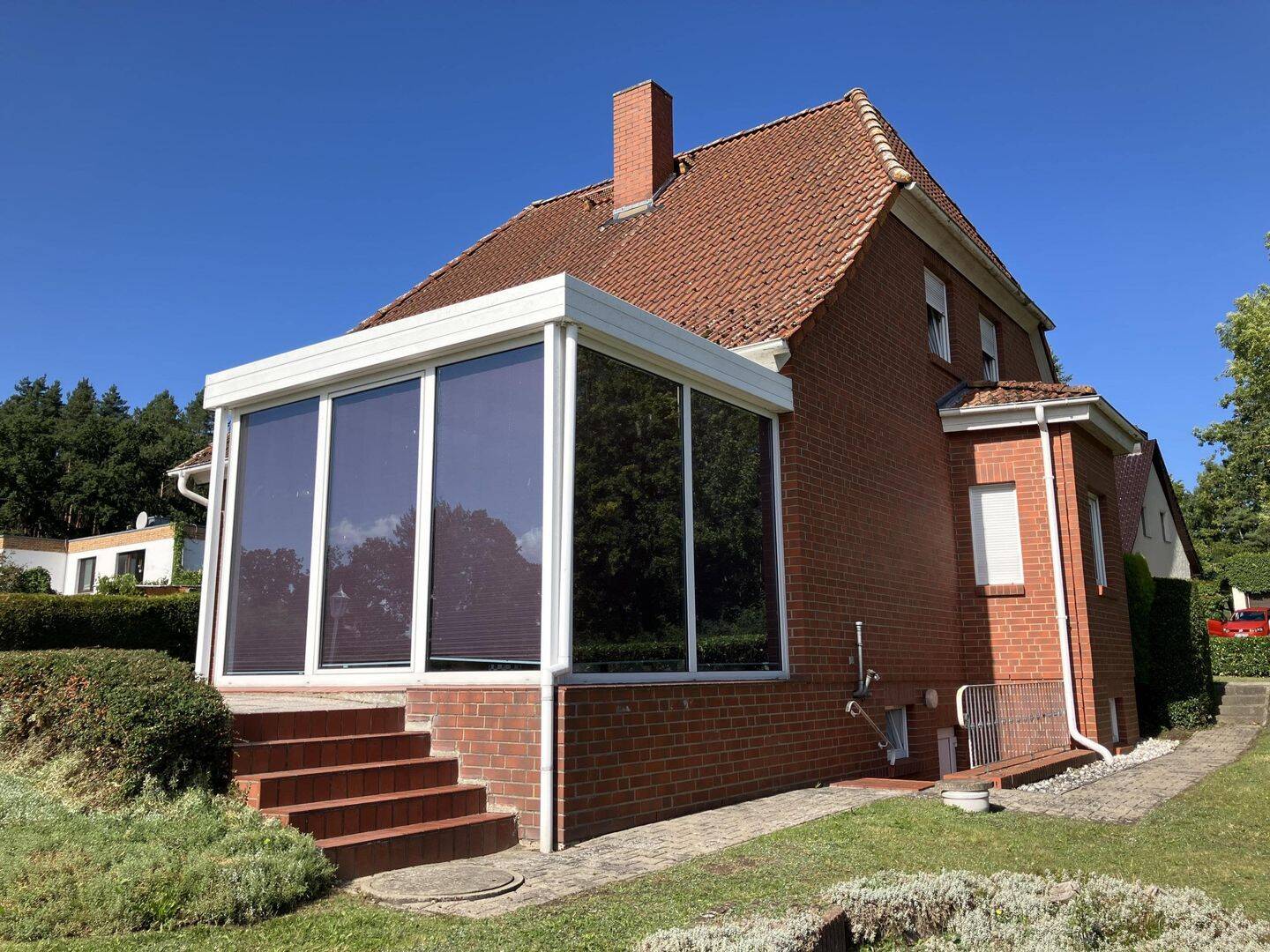 Kurzbeschreibung Einfamilienhaus mit Doppelgarage, Wintergarten und großem Grundstück Objekt Das Einfamilienhaus in Demmin, Hansestadt, bietet eine Wohnfläche von 142,1m² auf einem 799,0m² großen Grundstück. Das ca. 1993 erbaute Haus ist massiv mit Klinkerfassade, Keller und großer Garage sowie Wintergarten und voll ausgebautem Dachgeschoss. Der Spitzboden bietet einen freien Blick auf die Peene und verfügt über Ausbaureserve.Die Immobilie verfügt über vier Zimmer, darunter ein Schlafzimmer, zwei Badezimmer mit Tageslicht und Badewanne sowie Dusche. Im Erdgeschoss gibt es einen Flur mit Treppenaufgang ins Dachgeschoss, eine offene Küche mit Essdiele, ein großes Wohnzimmer mit Wintergarten und Terrasse, ein Schlaf- oder Gästezimmer sowie ein Bad mit Wanne und Dusche. Im Dachgeschoss befinden sich zwei Zimmer und ein Duschbad.Im Keller sind ein Gäste WC, ein Bad mit Dusche, ein Partyraum, eine Waschküche, eine Werkstatt und ein Abstellraum vorhanden. Die Ölheizung und das Öllager befinden sich ebenfalls im Keller. Die große Doppelgarage bietet ausreichend Platz für zwei PKW sowie Fahrräder usw. Zu den besonderen Merkmalen gehören die Terrasse am Haus, der Wintergarten, die Terrasse im Garten, die Fußbodenheizung und die Doppelgarage. Im Wohnzimmer gibt es die Möglichkeit einen Kamin aufzustellen bzw. einzubauen. Das Haus ist voll erschlossen und bietet eine ideale Umgebung für Entspannung mit der Familie. Das Grundstück wurde Richtung Peene durch die Pacht von zusätzlichen 1.100 m² von der Stadt erweitert und ist in einem sehr gepflegten Zustand.Pacht 264 €/Jahr