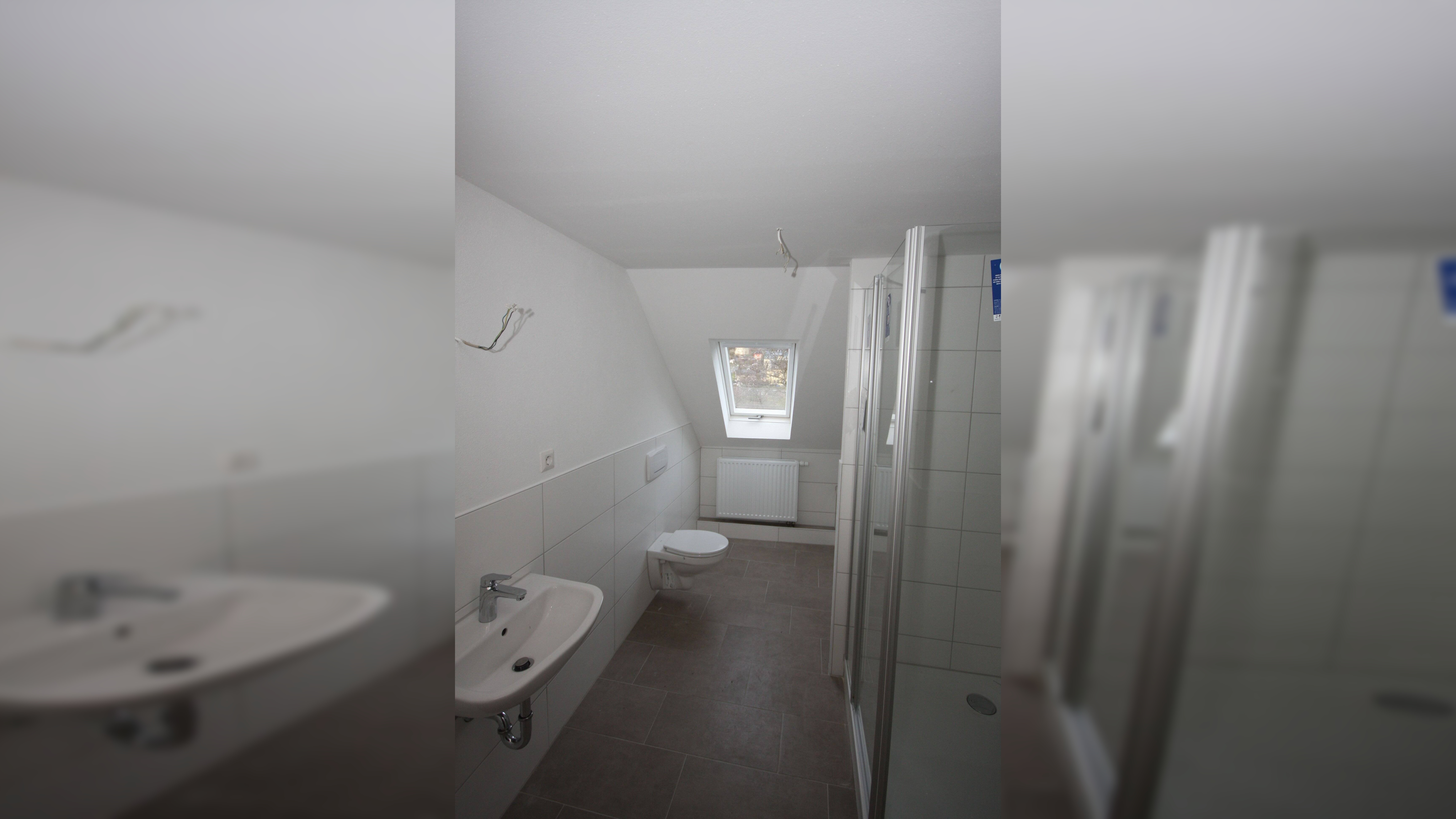 Die Wohnung wurde umfassend neu saniert. Sie befindet sich im Dachgeschoß eines 4-Familienhauses. Die Wände sind mit Rauhfasertapete weiß tapeziert. Als Bodenbelag ist Laminat verlegt.Einkaufsmöglichkeiten und Haltestellen des ÖPNV sind fußläufig in wenigen Minuten erreichbar.