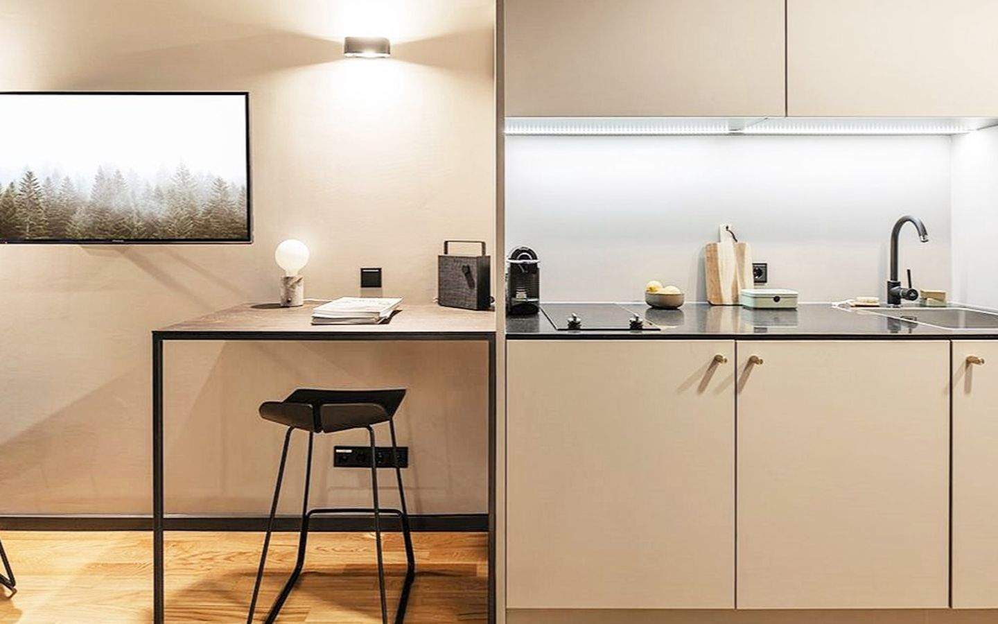 Das Apartment bietet die wichtigsten Funktionen für einen komfortablen Aufenthalt. Es verfügt über eine voll ausgestattete Designerküche mit Kühlschrank, Ceran-Kochfeld, Mikrowelle und Geschirrspüler, einen kleinen Arbeitsplatz mit einem bequemen Stuhlsessel, ein modernes Bad, Eichenparkett. Im 1,40m breiten Bett kann man sich alleine richtig schön ausstrecken; es bietet trotzdem auch noch Platz für eine zweite Person.Maßgeschneiderte Einbauten, Designtapeten und die ausgesuchte Einrichtung von Vitra, KFF, Muuto, Hay, Fermliving, die Designer-Küche und das 140cm Bett von Möller-Design sind gekonnt integriert. Arbeitsbereich, weiterer Tisch und 2 Loungesessel oder Sofa runden diese komfortable Einheit ab. Moderne Technik - vom kostenlosen Highspeed-W-LAN, Bluetooth-Box bis zum Flachbild-TV - entspannt das Wohnen und Arbeiten zusätzlich. . Küchenzeile mit Kühlschrank, Spülmaschine, Mikrowelle, Ceran-Kochfeld, Kaffee-Maschine und Grundausstattung (Geschirr, Besteck etc.). Smart-TV. Bluetooth Box. Safe. Bügeleisen & -brett auf Wunsch. per App bezahlbare Waschmaschinen und Trockner in der Gemeinschafts-Waschküche. Loungenutzung. Internetzugang kostenlos. 14-täglicher Reinigungs- und Wäschewechselservice. persönliche Einweisung. Concierge-Service montags bis freitags von 8 bis 18 Uhr . 24/7 Notfall-Hotline. Welcome-PaketEXTRA SERVICES:. Fahrradverleih. Frühstücksangebot. Beistellbett/Babybett- Endreinigung: Es wird noch eine Endreinigungsgebühr von 99 Euro berechnet, unabhängig von der Dauer Ihres Aufenthalts.In Frankfurts neuem Stadtteil Gateway Gardens finden Sie unser in 2020 eröffnetes Haus mit 177 Design-Serviced-Apartments in hervorragender Lage. Denn das Global Business Village ist der am besten angebundene Standort Europas: Direkt an Flughäfen sowie am Fern- und Regionalbahnhof gelegen und mit Anschluss an die Autobahnen A5 und A3. Zudem verbinden Busse und Bahnen Gateway Gardens mit Frankfurt. Mit der neuen S-Bahn dauert die Fahrt zum Frankfurter Hauptbahnhof nur 9 Minuten.Doch warum das Village verlassen? Im direkten Umfeld finden Sie alles, was das Herz begehrt: vielfältige Einkaufsmöglichkeiten, Fitness- und Gastronomieangebote und den 8.000 Hektar großen Frankfurter Stadtwald. Im EG finden Sie ein neues italienisches Gastrokonzept. Außerdem hat das Quartier einen eigenen Park mit altem Baumbestand - ein idealer Ort zum Entspannen und Krafttanken. Mittlepunkt des Hauses ist unsere großzügige Vitra Lounge mit Konferenzbereich.