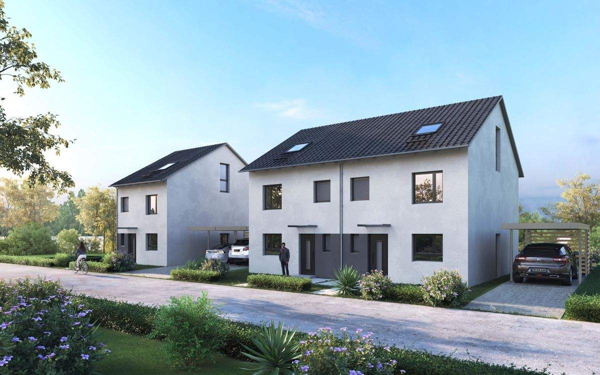 Diese moderne und energieeffiziente Doppelhaushälfte befindet sich in einem neu erschlossenen, familienfreundlichen Baugebiet in ruhiger und naturnaher Lage. Die Immobilie vereint zeitgemäße Architektur mit durchdachtem Wohnkomfort und bietet auf ca. 131 m² Wohnfläche ausreichend Platz für die ganze Familie.Im Erdgeschoss erwartet Sie ein großzügiger, lichtdurchfluteter Wohn- und Essbereich mit direktem Zugang zur sonnigen Terrasse und dem pflegeleichten Garten - ideal für entspannte Familiennachmittage oder gesellige Grillabende. Die offene Küche lässt sich individuell gestalten und bildet das Herzstück des Hauses.Im Obergeschoss befinden sich drei gut geschnittene Schlafzimmer sowie ein modernes, voll ausgestattetes Badezimmer mit Badewanne und Dusche. Das Dachgeschoss bietet zusätzlichen Stauraum oder kann optional als weiterer Wohnraum (z.?B. Büro oder Gästezimmer) genutzt werden.Es handelt sich um ein KfW Effizienzhaus 40 mit der Förderstufe KFWG als klimafreundliches Wohngebäude für günstige Förderkredite. Die Häuser werden nach den Kriterien des GEG von 2023 erstellt.Das Objekt wird für den Käufer provisionsfrei angeboten.Haben wir Ihr Interesse geweckt? Gerne senden wir Ihnen auf Anfrage weitere Informationen und Pläne oder vereinbaren einen persönlichen Termin.