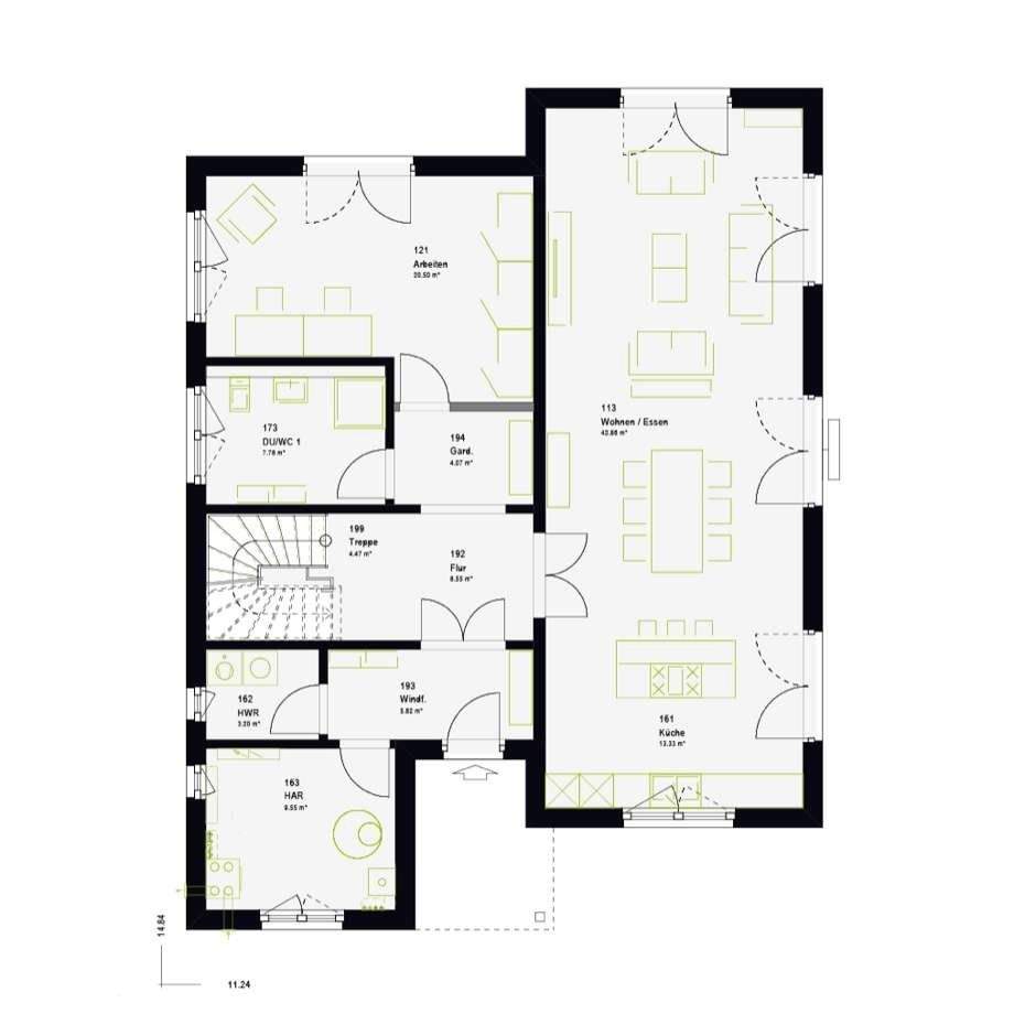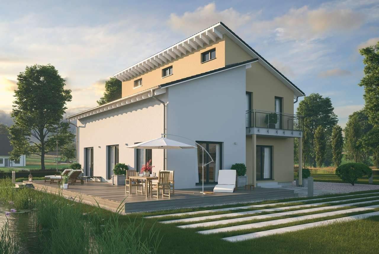 Kreatives Einfamilienhaus mit modernem Pultdach - Die Außenansicht besticht durch zwei charakteristisch leicht gegeneinander versetzte Baukörper und bodentiefen Verglasungen, so kommt viel Licht ins Haus. Hier können Wohnträume von Groß und Klein umgesetzt werden.