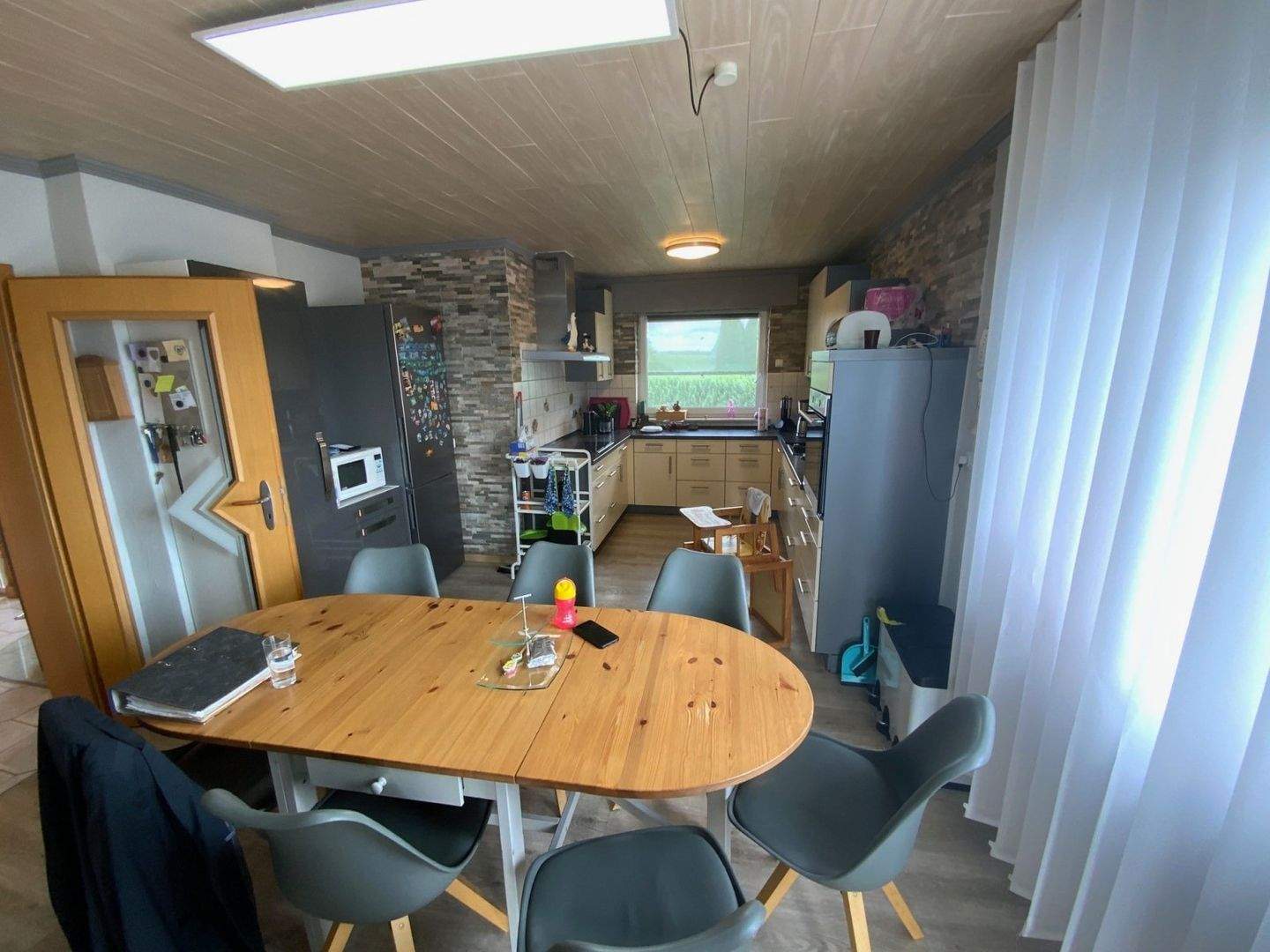 Diese freistehende und gepflegte Immobilie wurde 1980 errichtet und 1998 mit einem großen lichtdurchfluteten Wintergarten erweitert.Wohnfläche - Hauptwohnung 186 m²Aufteilung EG: Windfang / Diele, Küche mit verbundenem Esszimmer und Zugang auf den Balkon, ein Schlafzimmer mit Ankleideraum, zwei Schlafzimmer, Flur, Wohnzimmer mit dem verbundenen Wintergarten, Badezimmer mit WC, Waschbecken, Dusche und Badewanne sowie Gäste-WC.DG: über eine Raumspartreppe erreichbar, zwei weitere Zimmer sowie ein nicht ausgebauter Raum als Dachboden.Wohnfläche - Einliegerwohnung 97 m² im KG: Flur, Diele, Küche, Wohnzimmer mit dem verbundenen Raum unter dem Wintergarten, Schlafzimmer, Abstellraum und Bad mit WC, Waschbecken und Badewanne.Weiterhin sind zwei Kellerräume und der Heizungsraum sowie der Lagerraum für Pellets vorhanden.Ausstattung: massive Bauweise, Satteldach mit unterschiedlichen Eindeckungen, isolierverglaste Kunststofffenster mit Jalousien, Stahlbetondecken über KG- und EG, Holzbalkendecke über DG, Pelletszentralheizung (BJ 2013) incl. Warmwasserversorgung, zwei weitere Einzelöfen, großes Pelletslager, PV-Anlage mit 11,5 kWp. Eine sehr gepflegte Außenanlage rundet diese tolle Immobilie ab. Es gibt eine Rasenfläche mit gepflasterten PKW-Stellplätzen, Steingärten vor und seitlich des Hauses und eine große Terrasse mit einer weiteren Rasenfläche sowie einer Einfriedung mittels Hecke als Sichtschutz.Die gepflegte Immobilie kann kurzfristig übernommen werden.