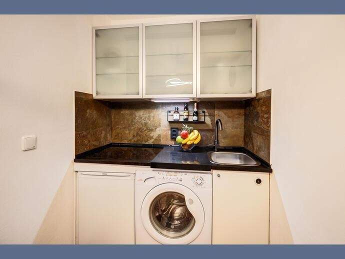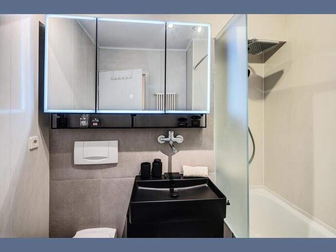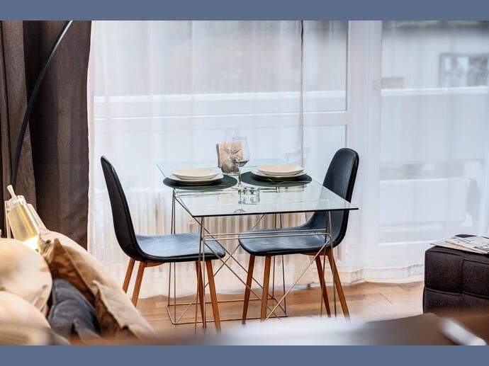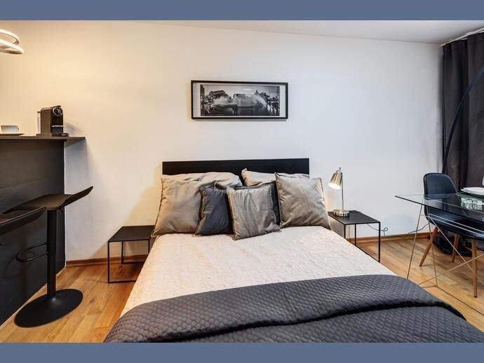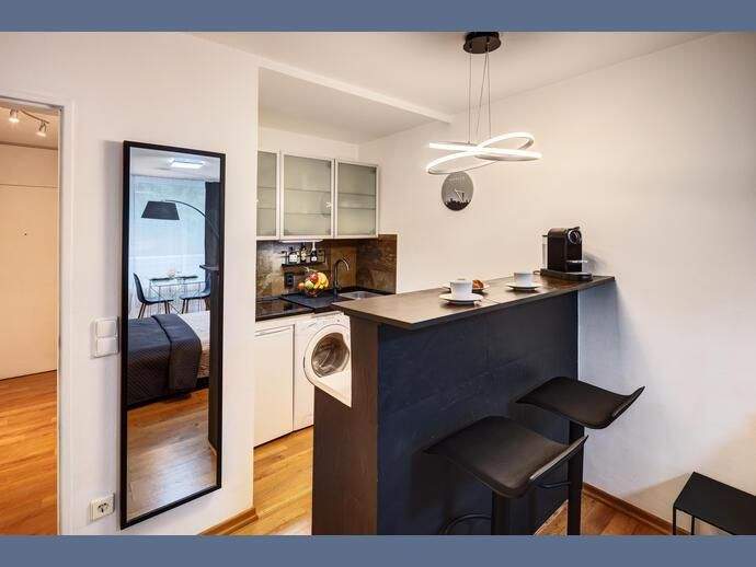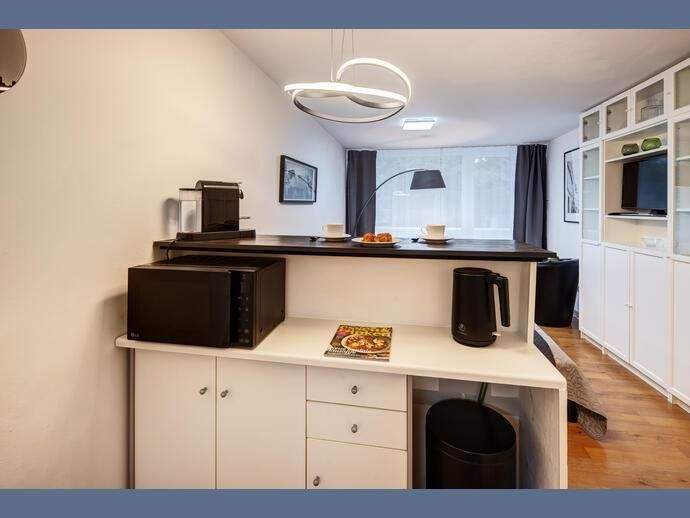 Weitere Informationen, viele hochauflösende Fotos und ein Video zu diesem Objekt finden Sie unter:https://www.mrlodge.de/wohnungen/detailansicht/12925/See offer in English:https://www.mrlodge.com/search/detailed-view/12925/Die Wohnung wurde hell, praktisch und gemütlich eingerichtet. Im Eingangsbereich befindet sich ein großer Schrank mit genug Stauraum für eine Person. So bleibt im Wohnraum genug Platz für ein großzügiges Bett, einen Sessel mit Hocker, einen Esstisch mit zwei Stühlen und eine Schrankwand mit Flachbildfernseher. Der Wohnraum wurde mit Laminat verlegt. Die Wohnung ist durch die großflächigen Fenster sehr hell.Zimmer:Kombiniertes Wohn-/Schlafzimmer:, Esstisch mit 2 Stühlen, Sessel und Hocker, französisches Bett 140 x 200 cm, Schrank, Kleiderschrank im Flur, Bad mit BadewanneBodenbelag:Laminatboden, FliesenbodenMöblierung:teils neu, schön und hell eingerichtetKüche: zum Wohnbereich offene Küche optisch durch eine Theke getrennt, Induktionskochfeld, Mikrowelle mit Grillfunktion, Kühlschrank mit Gefrierfach, Kapsel-Kaffeemaschine, Wasserkocher, komplett mit Geschirr und KüchenutensilienInternet:WLANInternet Flatrate (mit bis zu 100 Mbit/s)Kosten in der Miete enthaltenSpecials:Helle WohnungBalkonKeller