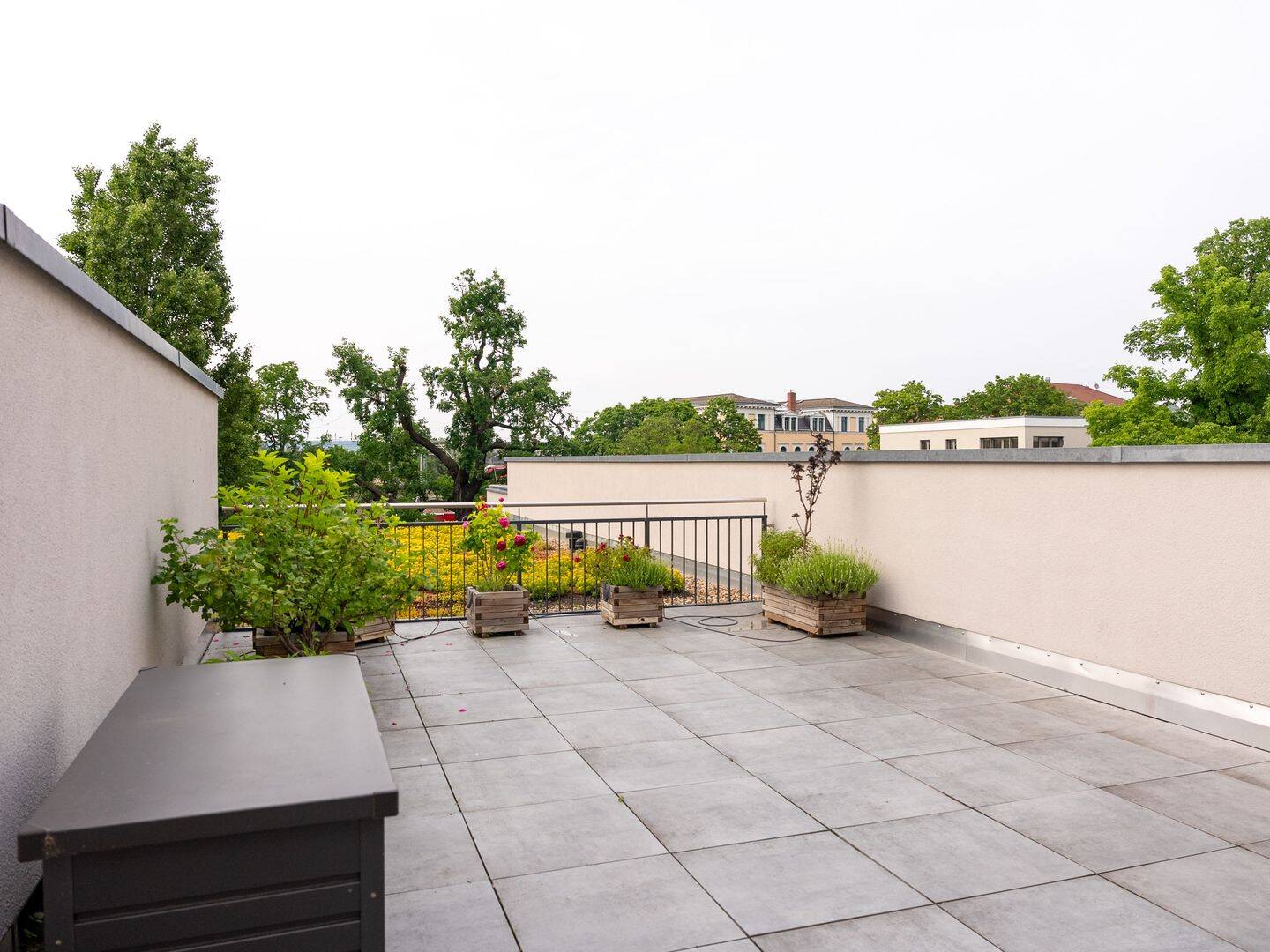 In einer der begehrtesten Wohnlagen Dresdens erwartet Sie diese außergewöhnliche Maisonette-Wohnung mit einer Wohnfläche von ca. 150 m², die sich über zwei stilvoll gestaltete Ebenen erstreckt. Gelegen im 3. Obergeschoss eines modernen, neuwertigen Mehrfamilienhauses, bietet das Objekt exklusiven Wohnkomfort auf höchstem Niveau.Herzstück der Wohnung ist die beeindruckende, rund 40 m² große Dachterrasse, die einen traumhaften Blick "ins Grüne" und ein perfekter Ort für entspannte Sommerabende oder gesellige Stunden mit Familie und Freunden ist.Die lichtdurchfluteten Zimmer, darunter zwei gemütliche Schlafzimmer, bieten vielfältige Nutzungsmöglichkeiten und ausreichend Platz für Paare, Familien oder das Arbeiten im Homeoffice. Der offen gestaltete Wohn- und Essbereich überzeugt durch seine Großzügigkeit und den direkten Zugang zur Dachterrasse. Eine große, helle Galerie mit 4 Dachfenstern durchflutet den oberen Bereich der Wohnung mit Tageslicht und verleiht ihr ein außergewöhnlich offenes und luxuriöses Wohngefühl. Die hochwertige Einbauküche ist funktional und elegant zugleich und fügt sich harmonisch in den Wohnbereich ein.Ein modernes Tageslichtbad mit eleganten Fliesen und hochwertigen Armaturen sowie ein separates Gäste-WC unterstreichen den durchdachten Grundriss. Der edle Parkettboden in den Wohnräumen und die Fußbodenheizung im gesamten Objekt sorgen für ein behagliches Wohnambiente zu jeder Jahreszeit.Zur Wohnung gehören außerdem ein praktischer Kellerraum sowie ein Außenstellplatz für Ihr Auto. Der Personenaufzug ermöglicht einen barrierearmen Zugang zu allen Etagen des Hauses und erhöht den Komfort zusätzlich.Diese Maisonette-Wohnung vereint urbanes Lebensgefühl mit stilvoller Ruhe Oase und ist ideal für alle, die das Besondere suchen. Einziehen und wohlfühlen - diese Wohnung ist ein echtes Unikat und wartet darauf, Ihr neues Zuhause zu werden.