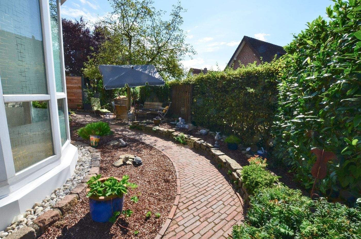 Träumen Sie auch von Ihrem eigenen Haus mit kleinem Garten, wo Sie wunderbar entspannen können und zentral wohnen? Dann könnte Ihr Traum bald wahr werden.Wir bieten Ihnen hier eine Doppelhaushälfte in Bocholt- Biemenhorst, die 1992 an das Haupthaus angebaut wurde. Sie bietet 107 qm Wohnfläche mit drei Zimmern und steht auf einem ca. 225 qm großem Grundstück. Sie betreten das Objekt durch eine Haustür mit vielen Glas-Elementen. Diese sorgen für einen hellen und freundlichen Empfang. Auf der linken Seite befindet sich das Gäste-WC mit Tageslicht. Eine Tür weiter finden Sie bereits die helle Küche mit Fliesenboden und großem Fenster. Auch ein kleiner Tisch für das schnelle Frühstück, während der Woche findet hier noch seinen Platz.Gegenüberliegend ist das Wohn- und Esszimmer mit dem wunderschönen Erker. Dieser lädt förmlich dazu ein, sich ein gemütliches Plätzchen einzurichten. Der vor kurzem renovierte Raum bietet genügend Platz für eine Wohnlandschaft, um gemütlich zu relaxen und für einen großen Esstisch an dem Sie mit der Familie gemütliche Abende verbringen können, oder an dem Sie einfach nur die leckeren Speisen genießen. Vom Wohnzimmer aus gelangen Sie auch auf Ihre Terrasse und in den Gartenbereich. Hier lässt es sich in der Abendsonne wundervoll bei einem Gläschen Wein entspannen, während Sie Ihren Blick in den Garten schweifen lassen. Dieses kleine Biotop wird Sie begeistern.Von der Diele aus gelangen Sie über eine massive Holztreppe in das Dachgeschoss. Hier befinden sich zwei weitere Räume und zwei Badezimmer. Das erste Tageslicht-Badezimmer ist mit Einbauschänken und einem Doppelwaschtisch versehen und verfügt über eine Badewanne. Es ist in frischem weiß gefliest, wobei gelbe Farbakzente das ganze aufpeppen. Das zweite Tageslicht-Badezimmer ist ganz getreu nach dem Motto: "Klein aber fein". Hier befindet sich neben dem WC und einem Waschbecken auch eine Dusche. Dieses Duschbad ist ebenfalls weiss gefliest und verfügt auch über die gelben Farbakzente. Die nassen Handtücher lassen sich wunderbar an der Handtuchheizung trocknen. Hier und im Elternschlafzimmer wurden 2015 neue Kunstofffenster eingebaut. Über einen Flur mit Fenstern in Bullaugen-Optik betreten Sie die beiden Zimmer, eins davon bietet einen Zugang zum kleinen Balkon, welcher sich auf dem Erker des Erdgeschosses befindet. Dieses Zimmer wird durch die große Fensterfront lichtgeflutet. Das Haus ist vollunterkellert. Hier befinden sich zwei größere Räume zur individuellen Gestaltung. Der Kellerbereich ist gefliest und verfügt teilweise über Heizkörper. Ein separater Raum für die Heizung (Baujahr 2016) ergänzt den Kellerbereich.Auch in puncto Technik und Nachhaltigkeit ist diese Lage zukunftsorientiert. Das Haus verfügt über einen Glasfaseranschluss, der für schnelles Internet sorgt - ideal für Homeoffice, Streaming oder die moderne Familiennutzung. Darüber hinaus ist eine Photovoltaikanlage (1,2 kWp) vorhanden, die nicht nur zur Senkung der Energiekosten beiträgt, sondern auch den nachhaltigen Charakter des Hauses unterstreicht. So verbinden sich hier Komfort, Umweltbewusstsein und Wirtschaftlichkeit auf zeitgemäße Weise.Ihre Autos parken Sie bequem auf den eigenen Stellplätzen vor der Tür. Sie sehen diese Immobilie hat viel zu bieten. Überzeugen Sie sich selbst und vereinbaren Sie einen Besichtigungstermin mit uns. Wir freuen uns auf Sie!