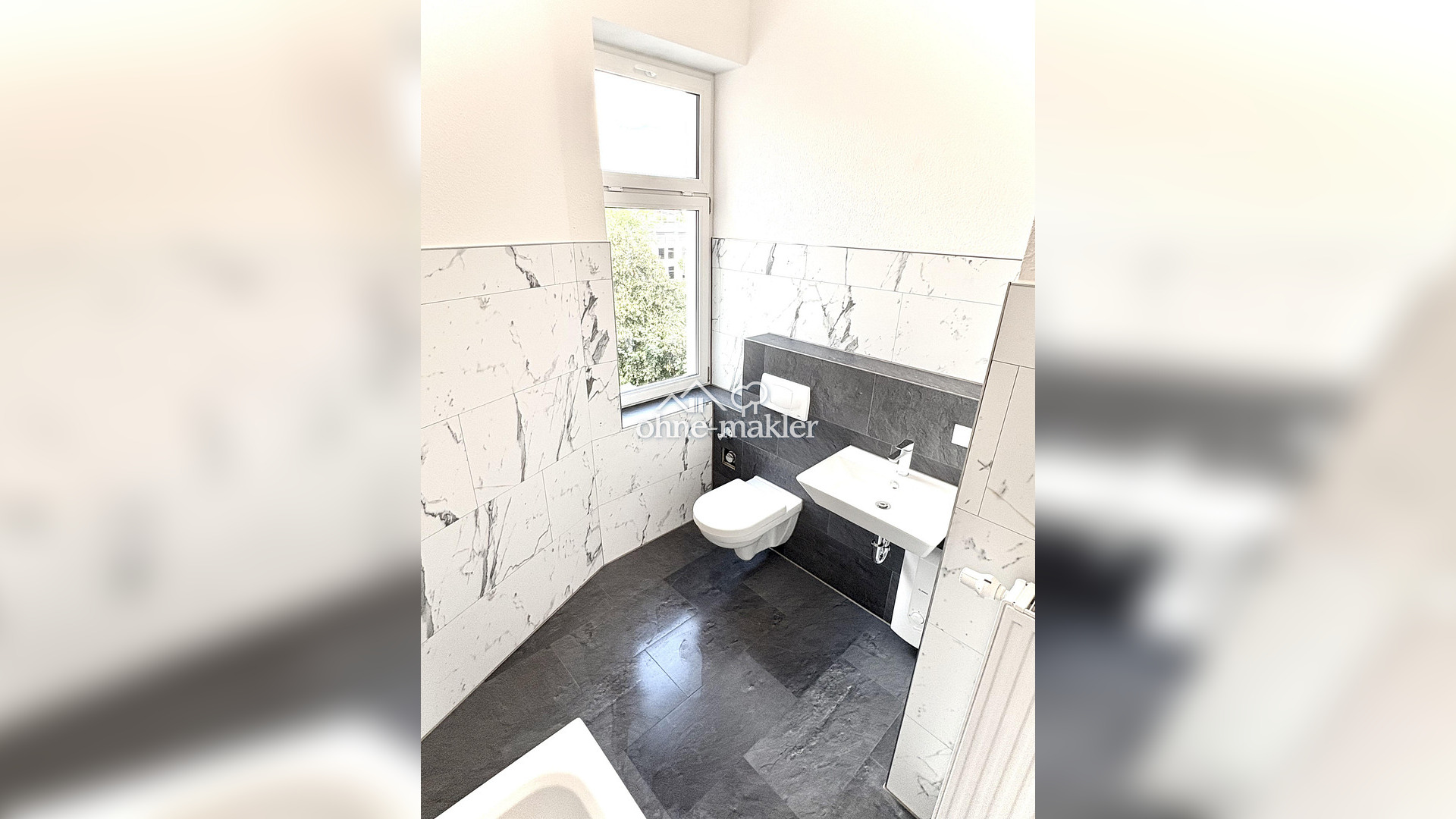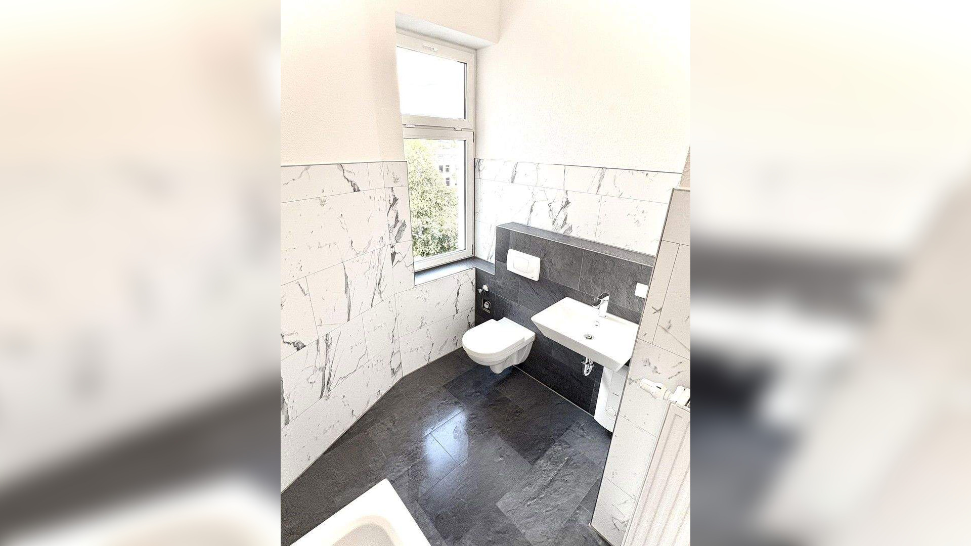 • Komplett neues Bad mit Badewanne, WC, Waschbecken und Waschmaschinenanschluss