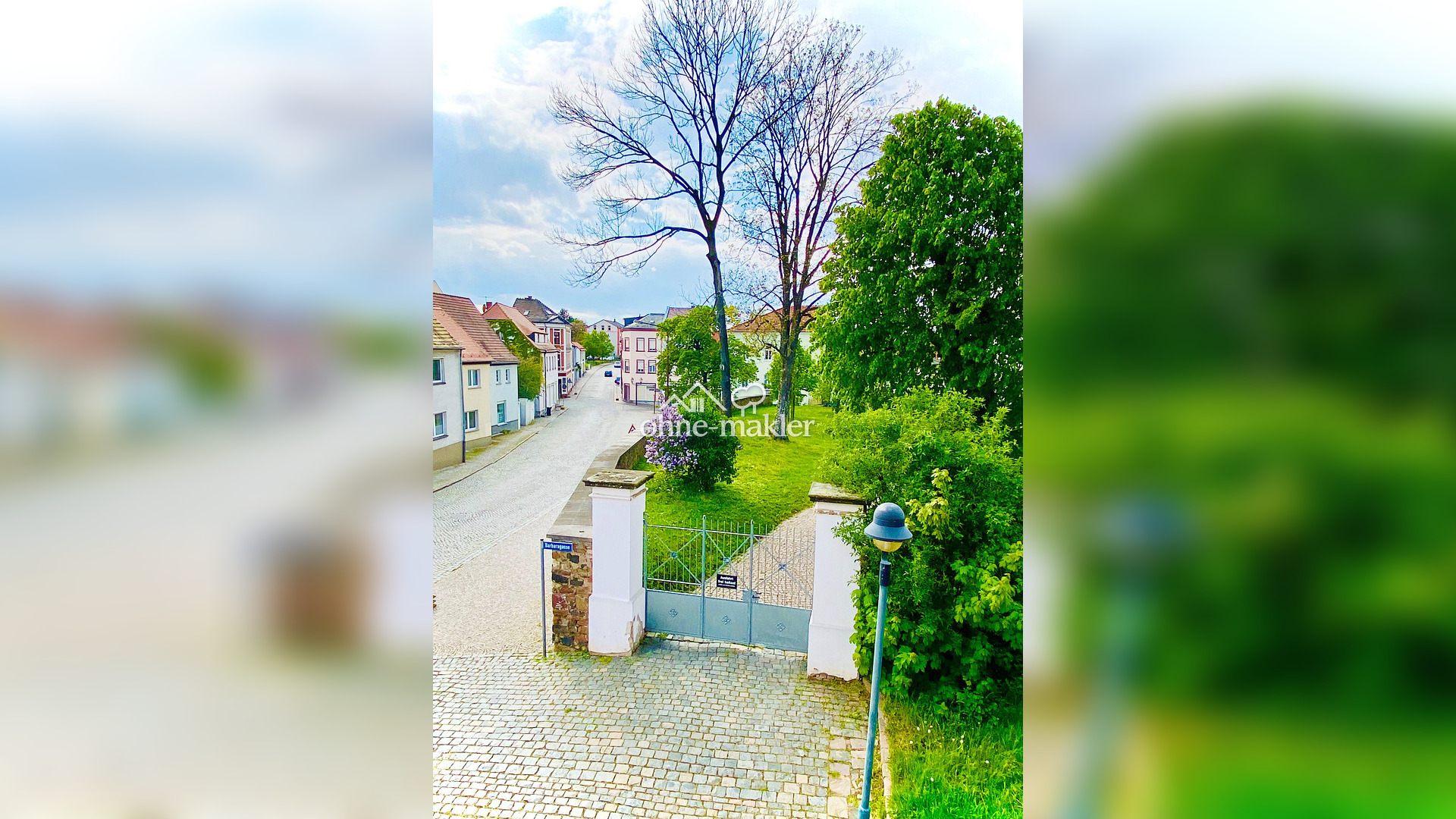 Die lichtdurchflutete Wohnung bietet nach Osten einen wundervollen Ausblick, vorbei am Kulturdenkmal Stadtkirche St. Wenceslai in Richtung Mulde. Ein eigener Stellplatz direkt am Haus sorgt für zusätzlichen Komfort. Das charmante Treppenhaus mit geschwungener Holztreppe wird derzeit liebevoll renoviert und unterstreicht den historischen Charakter des Hauses.