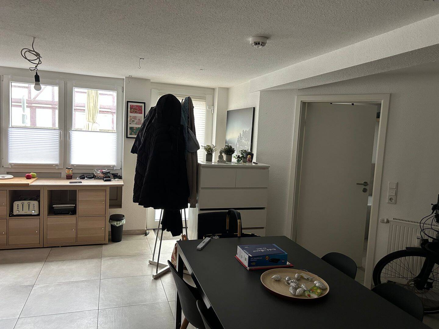 Die Wohnung befindet sich in einem Fachwerkaus und hat daher eine Deckenhöhe von 2,25 Metern.