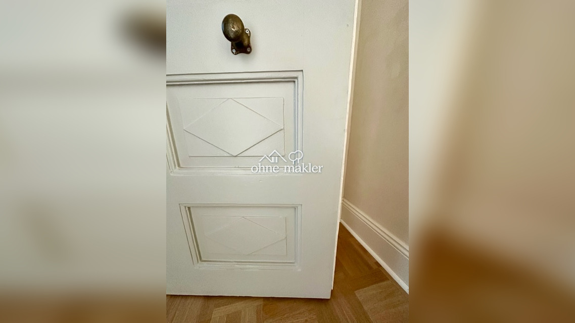 Das zweite Schlafzimmer verfügt ebenfalls über massiven Eichestäbchenparkettboden sowie neue 3 fach verglaste Fenster mit elektrischem Rolladen und gedämmten historischen Rolladenkasten.