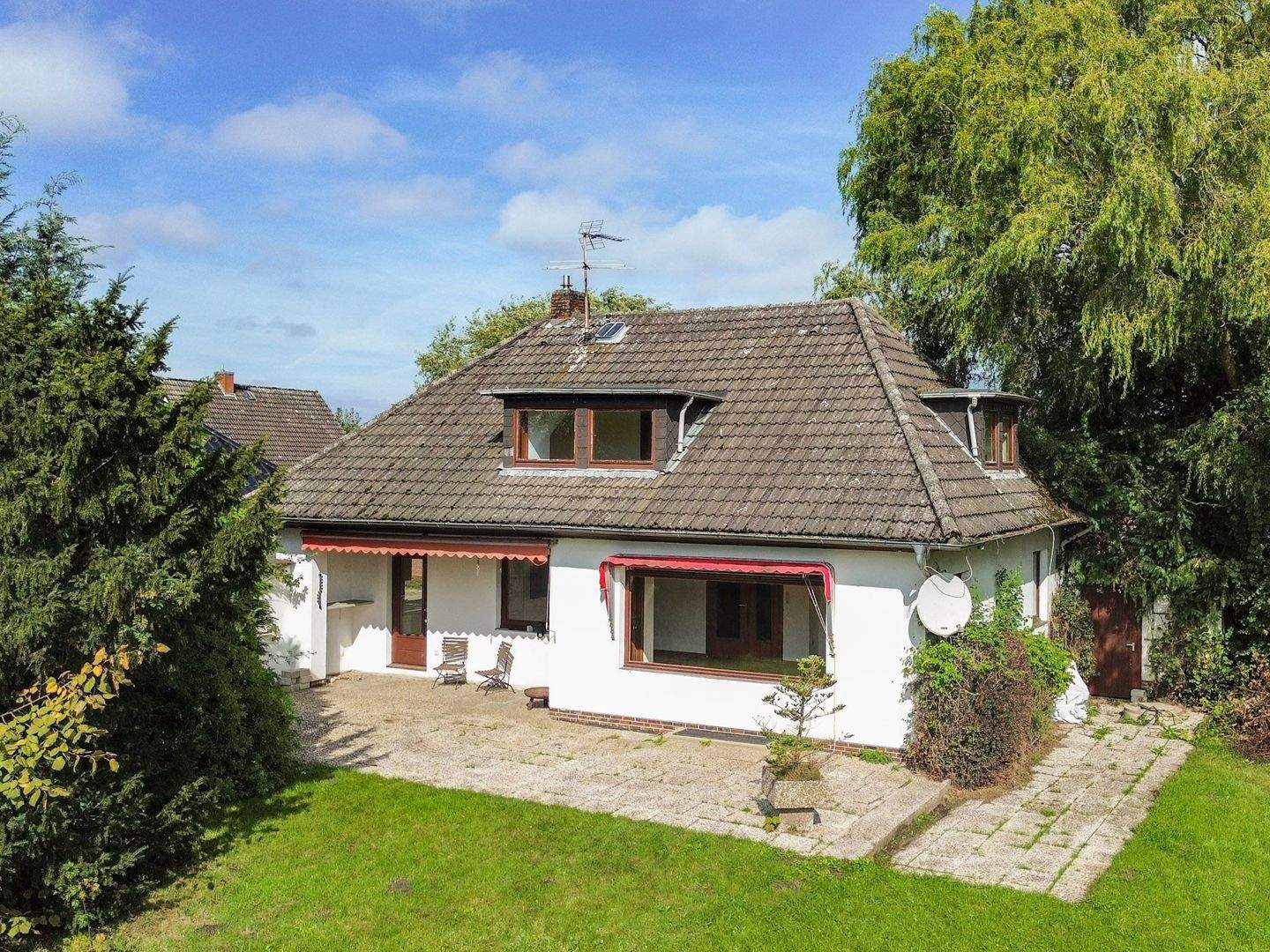 In ruhiger Lage von Loxstedt-Lanhausen erwartet Sie dieses freistehende Einfamilienhaus mit viel Platz und großem Potenzial. Das Fertighaus der Marke OKAL wurde im Jahr 1961 errichtet und bietet Ihnen auf ca. 135,5 m² Wohnfläche sowie ca. 80 m² Nutzfläche genügend Raum für individuelle Wohnideen. Das großzügige Grundstück umfasst rund 821 m² und eröffnet vielfältige Gestaltungsmöglichkeiten. Das Erdgeschoss empfängt Sie mit einem Windfang und einem zentralen Flur, von dem aus alle Räume zugänglich sind. Hier befinden sich ein Schlafzimmer, ein helles Wohnzimmer mit Zugang zur Terrasse und in den Garten, eine Küche mit weiterem Terrassenzugang, ein Gäste-WC sowie ein praktisches Büro. Von hier aus gelangen Sie außerdem in den Vollkeller, der viel Stauraum und Nutzfläche bietet. Im Obergeschoss stehen Ihnen drei weitere, großzügige Zimmer zur Verfügung, die sich hervorragend als Kinder-, Gäste- oder Arbeitszimmer nutzen lassen. Das kompakte Vollbad mit Dusche und Badewanne rundet das Raumangebot dieser Etage ab. Zum Haus gehört eine Garage, die Ihnen komfortables Parken direkt am Haus ermöglicht. Das Gebäude ist insgesamt sanierungsbedürftig und bietet somit die Möglichkeit, es nach Ihren eigenen Vorstellungen zu modernisieren und zu einem individuellen Zuhause zu gestalten. Besonders interessant: Das angrenzende Baugrundstück mit einer Größe von 779qm kann zusätzlich erworben werden. Zusammen ergibt sich eine großzügige Fläche, die auf den ersten Blick wie ein großes Einzelgrundstück wirkt. Bitte beachten Sie: Der auf den Bildern erkennbare Pool im hinteren linken Bereich gehört zum Nachbargrundstück, könnte aber bei Erwerb des zusätzlichen Grundstücks wieder in Betrieb genommen werden. Mit etwas handwerklichem Geschick oder einer umfassenden Modernisierung lässt sich hier ein charmantes Zuhause mit viel Platz und Potenzial schaffen.