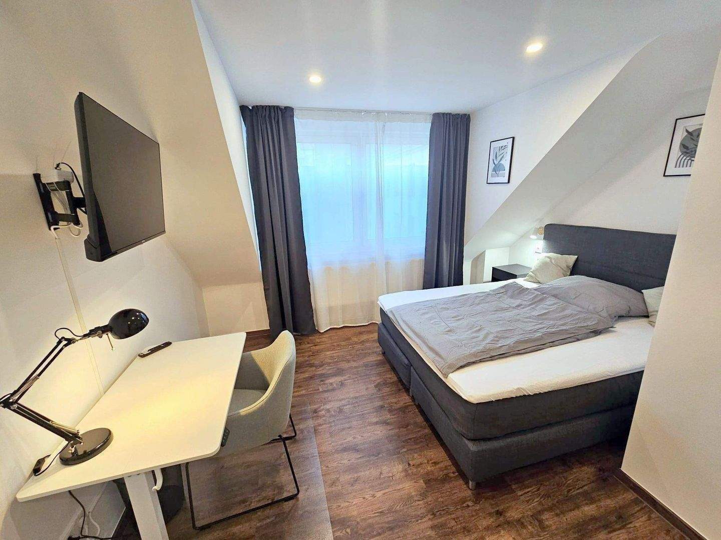 Die Wohnung und die Zimmer sind vollständig möbliert undhochwertig ausgestattet.Der Wohnbereich verfügt über ein großes Sofa, einen Fernseherund stilvolle Beleuchtungselemente, die für eine angenehmeAtmosphäre sorgen.Jedes der drei Zimmer ist individuell gestaltet und funktionalmöbliert. Die Zimmer sind mit einem 1,40 m breiten Bettausgestattet und verfügen über einen geräumigenKleiderschrank, einen Schreibtisch mit Stuhl sowie einenNachttisch mit entsprechender Beleuchtung. Wandspiegel undstilvolle Dekorationen verleihen den Räumen eine moderne undwohnliche Atmosphäre.Alle Zimmer sind klimatisiert und bieten somit auch an heißenTagen ein angenehmes Raumklima.Große Fenster mit Vorhängen sorgen für viel Tageslicht und eineangenehme Wohnatmosphäre.Die Küche ist modern eingerichtet und bietet alle notwendigenGeräte und Utensilien für den täglichen Gebrauch.Das Badezimmer ist modern gestaltet und verfügt über eineDusche sowie ein WC. Zusätzlich gibt es ein separates Gäste-WCfür mehr Komfort im Alltag.Die Kombination aus hochwertigem Mobiliar, durchdachterRaumaufteilung und zentraler Lage macht diese WG zu einerattraktiven Wohnmöglichkeit für alle, die eine stilvolle undkomfortable Unterkunft suchen.Die Etage wird in den gemeinschaftlichen Bereichen durch denVermieter wiederkehrend gereinigt.The apartment and the rooms are fully furnished and equippedto a high standard.The living area has a large sofa, a TV and stylish lighting elementsthat create a pleasant atmosphere.Each of the three rooms is individually designed and functionallyfurnished. The rooms are equipped with a 1.40 m wide bed andhave a spacious closet, a desk with chair and a bedside tablewith appropriate lighting. Wall mirrors and stylish decorationsgive the rooms a modern and homely atmosphere.All rooms are air-conditioned and therefore offer a pleasantroom climate even on hot days.Large windows with curtains provide plenty of natural light and apleasant living atmosphere.The kitchen is modernly equipped and offers all the necessaryappliances and utensils for daily use.The bathroom has a modern design and features a shower andWC. There is also a separate guest WC for added convenience ineveryday life.The combination of high-quality furnishings, well thought-outroom layout and central location makes this shared flat anattractive option for anyone looking for stylish and comfortableaccommodation.The floor is cleaned by the landlord on a regular basis in thecommunal areas.
