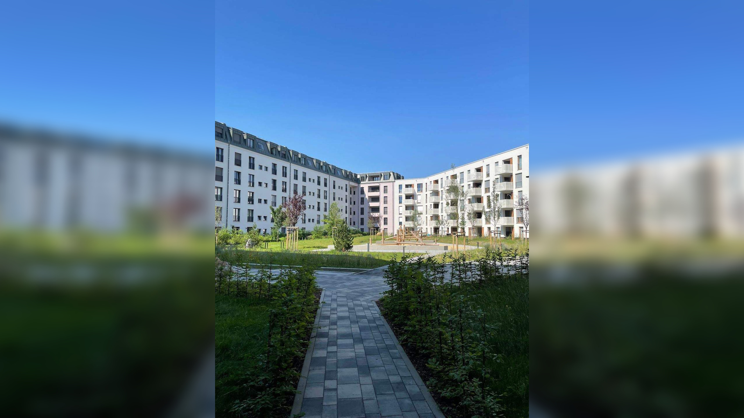 Die vier Häuser D, E, F und G (gemeinsam MIKA 2 genannt) verfügen über insgesamt 179 Wohneinheiten, verteilt vom Erdgeschoss bis zum 6. Obergeschoss und eine Gewerbeeinheit. Die Häuser D bis G sind Teil eines Gesamtprojekts, bilden mit den Häusern A bis C (MIKA 1) eine geschlossene Einheit und haben eine gemeinsame Tiefgarage. Die Ein- und Ausfahrten befinden sich im Haus A und C.Die Mitte des Grundstückes ist freigehalten. Hier befindet sich ein gemeinschaftlicher, grüner Freiraum. Bäume und weitere Bepflanzungen gliedern die Flächen, bieten Schatten und lenken den Blick innerhalb der Erholungsoase. Es gibt große, zum Teil leicht modellierte abgesenkte Rasenflächen zum Spielen oder Liegen, einen Spielplatz, verschiedenste Sitzecken und Plätze zum Lesen und Plauschen.