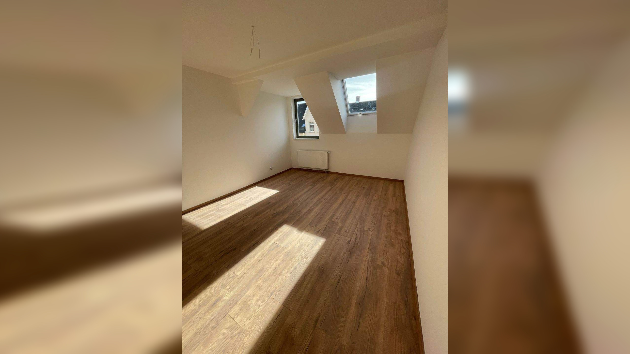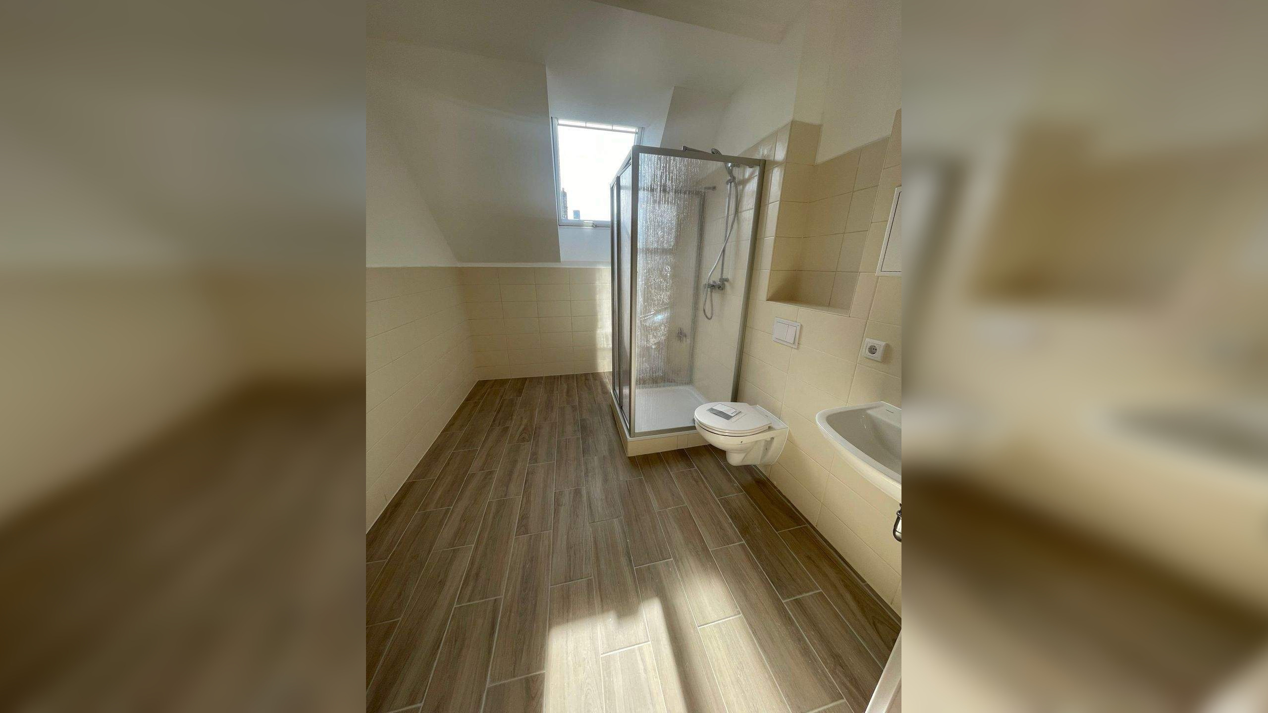 Ab sofort zu vermietende, hübsche DG-Wohnung in einem liebevoll NEU sanierten Wohnhaus.Das großzügige Badezimmmer ist hübsch gefliest, mit Fenster und verfügt über eine Dusche. Die Küche ist offen zum Erker-Wohnzimmer gehalten, welches zur Strasse, Richtung Süden, zeigt.Die Fenster sind dreifach verglast, somit hört man keinen Strassenlärm.Das Wohnzimmer und das KInderzimmer bietet den Zugang zur Loggia gen Süden.Geheizt wird mit Fernwärme.