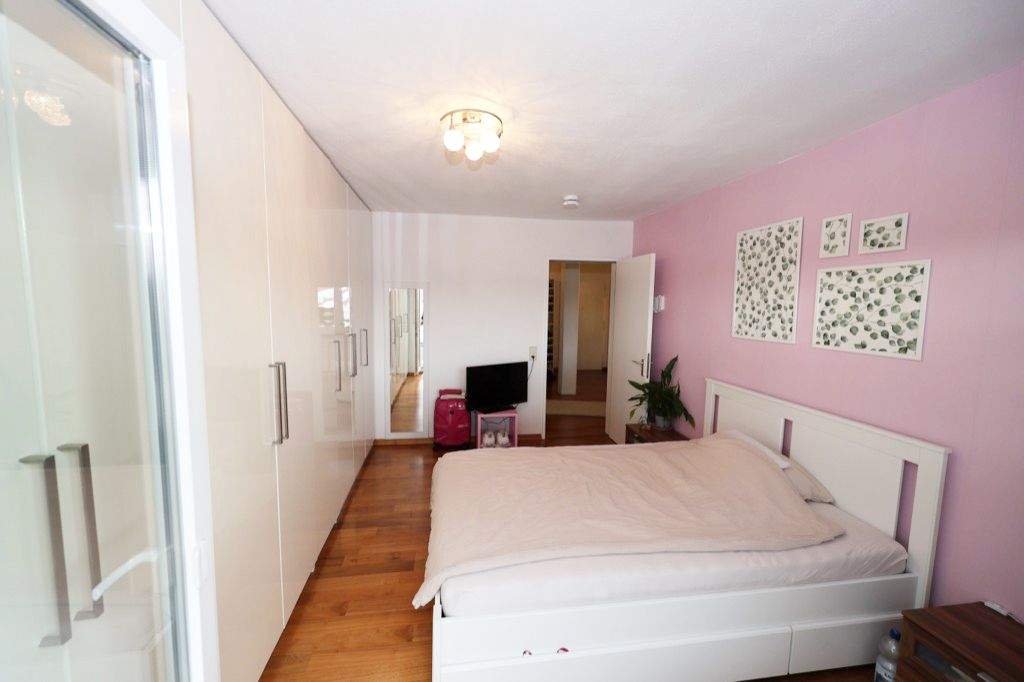 Allgemeines:Die Mietwohnung befindet sich im 4. Obergeschoss eines 1974 erbauten Mehrfamilienhauses und verfügt über einen Aufzug und einen Hausmeisterservice.Zur Wohnung gehören eine große Dachterrasse in Südausrichtung, ein Abstellraum im Untergeschoss sowie ein Stellplatz in der Tiefgarage.Zur gemeinschaftlichen Nutzung stehen ein Trockenraum und ein Fahrradraum zur Verfügung. Die Beheizung erfolgt über eine Ölzentralheizung.