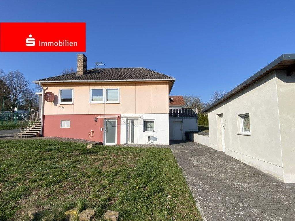 Charmantes Wohnhaus mit Einliegerwohnung und großem Grundstück - vielseitige Nutzungsmöglichkeiten.Dieses Fertighaus der Marke Neckermann aus dem Jahr 1974 präsentiert sich auf einem 874 m² großen Grundstück und überzeugt durch eine praktische Raumaufteilung, eine separate Einliegerwohnung sowie eine neu errichtete Doppelgarage. Die Immobilie verfügt über ein Walmdach, eine Öl-Zentralheizung aus den 90er-Jahren, doppelt verglaste Kunststofffenster sowie pflegeleichte Laminat- und Fliesenböden. Die Außenfassade könnte asbesthaltig sein. Im Erdgeschoss empfängt Sie ein Windfang mit anschließendem Flur. Links liegen ein Abstellraum sowie ein kleiner Zwischenflur mit Gäste-WC und der Küche, die als Durchgangszimmer zum hellen Essbereich dient. Geradeaus gelangen Sie in das großzügige Wohnzimmer, das als Durchgangszimmer in einen weiteren kleinen Flur führt. Von dort erreichen Sie zwei Zimmer sowie ein Duschbad; eines der Zimmer bietet Zugang zum Balkon mit Blick in den Garten.Die Einliegerwohnung im Kellergeschoss verfügt über einen eigenen Eingang. Sie betreten die Einheit direkt in die Küche, über den Flur erreichen Sie ein Schlafzimmer mit Bad. Ein zusätzlicher, länglicher Flur führt in ein weiteres Schlafzimmer mit kleinem begehbarem Kleiderschrank. Der Eingang kann bei Bedarf so verlegt werden, dass man nicht direkt in der Küche steht - ideal für flexiblere Wohn- oder Vermietungskonzepte. Im Keller haben wir eine niedrigere Deckenhöhe. Ein kleiner, pflegeleichter Garten sowie die moderne Doppelgarage runden dieses attraktive Angebot ab. Ideal für Familien, Mehrgenerationenwohnen oder Kapitalanleger! Das Haus wird nach Absprache frei werden - SIE SOLLTEN SICH DIESES ANGEBOT NICHT ENTGEHEN LASSEN!