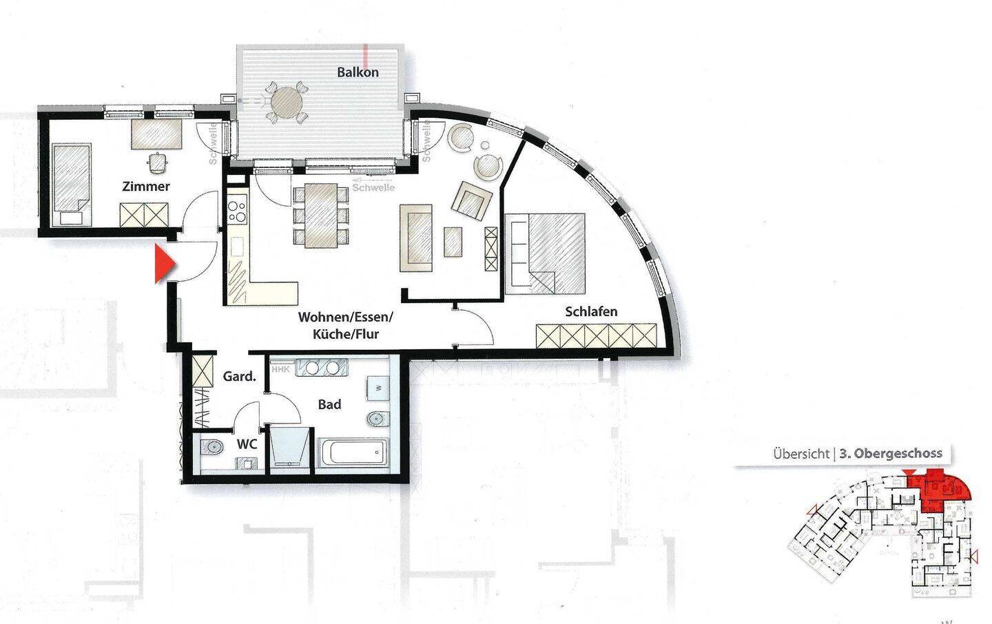 Die 3-Zimmer-Neubauwohnung (81,5 qm) mit gehobener Ausstattung befindet sich im Zentrum von Sindelfingen, neben dem ehemaligen Landesgartenschaugelände. Supermärkte, Kindergarten und Schulen sind in direkter Nähe.