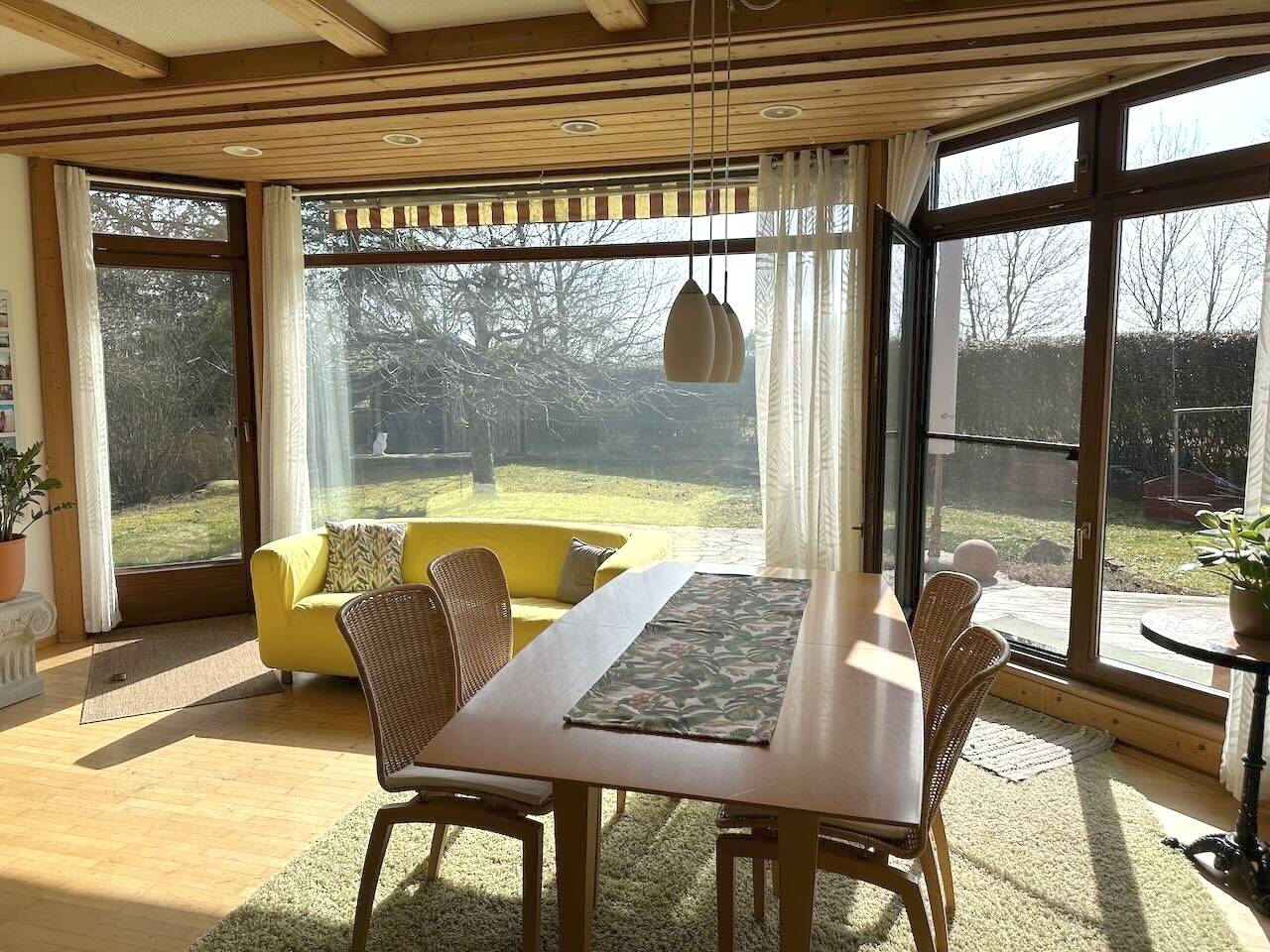 Dieses freistehende Klinker-Einfamilienhaus in Estenfeld überzeugt durch seinen charmanten Charakter und die ruhige, familienfreundliche Lage mit einem Grundstück mit ca. 676 m².Die gepflegte Immobilie präsentiert sich mit einem weitläufigen Hof vor dem Haus, einer Doppelgarage sowie einem sonnigen Garten mit herrlichem Blick ins Grüne - ideal für Familien und Naturliebhaber.Im Erdgeschoss erwartet Sie ein offen gestalteter Wohn- und Essbereich mit großer Fensterfront und direktem Zugang zum Garten. Die angrenzende Küche bietet die Möglichkeit, zum Wohnbereich hin geöffnet zu werden und so ein modernes, offenes Wohnkonzept zu schaffen.Ein gemütlicher Kachelofen sorgt besonders in den kühleren Monaten für eine behagliche Wohnatmosphäre.Ergänzt wird diese Etage durch zwei weitere Zimmer sowie ein Badezimmer.Im Obergeschoss stehen Ihnen zwei zusätzliche Zimmer sowie ein weiteres Bad zur Verfügung. Diese Räume lassen sich flexibel nutzen und bieten vielfältige Gestaltungsmöglichkeiten - ideal für Kinderzimmer, Homeoffice oder Gästebereiche.Ein besonderes Plus ist die im Haus integrierte Einliegerwohnung. Diese eignet sich hervorragend zur Vermietung, als separater Arbeitsbereich oder zur Eigennutzung - beispielsweise für Mehrgenerationenwohnen.Dieses Haus bietet Ihnen eine perfekte Kombination aus gemütlichen Wohnen, flexibler Nutzung und einer ruhigen, familienfreundlichen Umgebung.