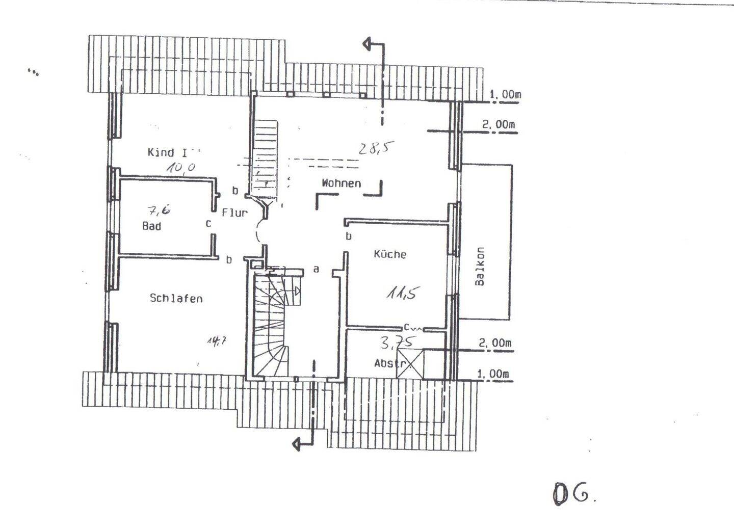 Im Obergeschoss: Wohnzimmer, Küche, Abstellraum, Vollbad, 2 Schlafzimmer