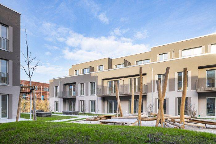 . Neubauquartier mit 64 Gebäuden und ca. 1.200 Wohnungen. die ersten Gebäude sind bereits bezogen und vollvermietet. alle Wohnungen wurden mit Einbauküchen ausgestattet. sämtliche Gebäude sind barrierefrei zugänglich. die Wohnung ist ebenfalls barrierefrei. Spielflächen in den Hofbereichen. großzügige Spiel- und Erholungsflächen künftig im Uferbereich der Dahme. autofreie Zonen im Quartier. attraktive Grünflächen. nachhaltiges Freiraumkonzept. hohe Standards im Bereich Klimafreundlichkeit und Mobilität. Photovoltaik zur Gewinnung von Allgemeinstrom innerhalb des Quartiers. Quartierladesäulen für E-Mobilität. Tiefgaragen- und Außenstellplätze separat anmietbar. Mieterkeller vorhanden. gut erreichbare Abstellräume für Fahrräder und Kinderwagen. Fahrradabstellplätze in den Außenbereichen. hochwertige Ausstattung der Wohnungen u.a. mit Designboden, Fußbodenheizung. familiengerechte Grundrissgestaltung inkl. offener Küchen im Wohn-/Essbereich. dreifachisolierte Fenster, meist bodentief. elektrischer Sonnenschutz an den Fenstern (außer Nordseite). Errichtung der Gebäude nach DGNB-StandardsÄhnliche Angebote
