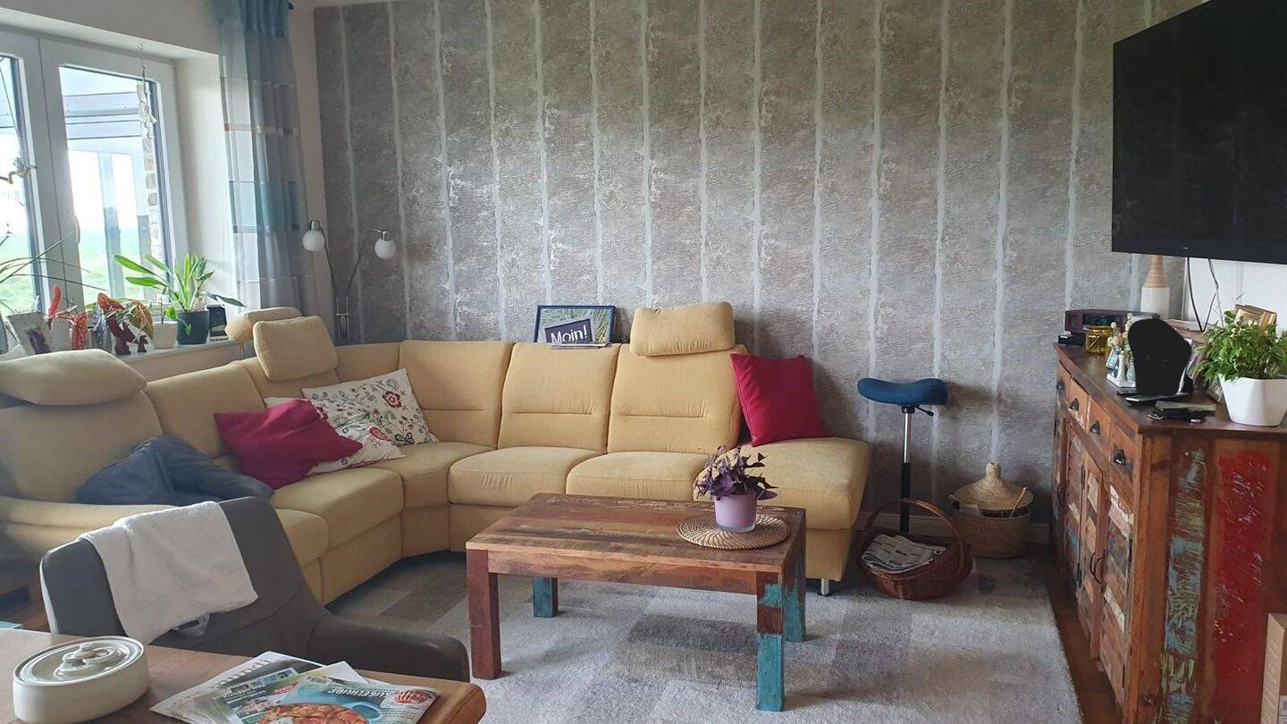 - Einen hellen Wohnbereich mit offener Einbauküche
