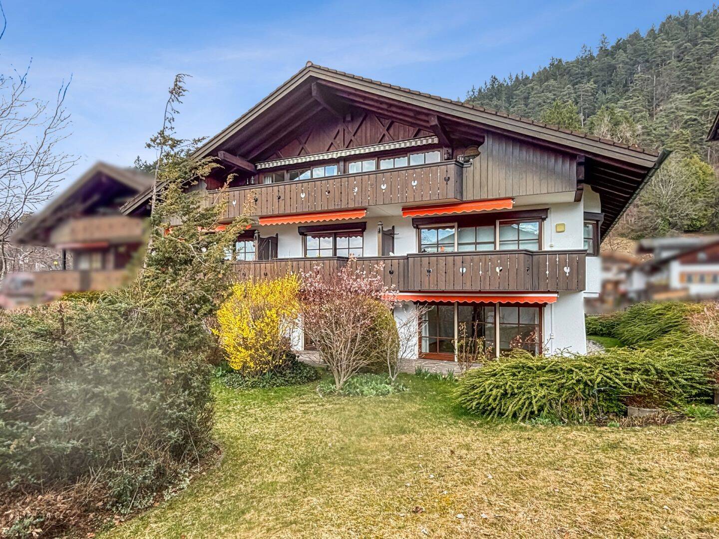In einem ca. 1992 errichteten Mehrfamilienhaus befindet sich diese klassisch geschnittene Terrassenwohnung in absolut ruhiger, erhöhter Lage am Fuße des Wank auf einem Hinterlieger-Grundstück.Sie betreten die Wohnung und gelangen in den Flur, der alle Räume der Wohnung miteinander verbindet:Das große, helle Wohnzimmer bietet eine breite Fensterfront nach Süden. Von der davor liegenden Terrasse genießt man nicht nur einen schönen Blick auf das Wettersteinmassiv bis zur Zugspitze und auf den Kramer, sondern auch die Ruhe des Hinterlieger-Grundstückes.Das geräumige Schlafzimmer ist ideal nach Norden ausgerichtet. Das gepflegte Bad verfügt über eine Badewanne und ein WC.Die funktionelle Küche ist voll ausgestattet und stellt aktuell einen abgeschlossenen Raum dar. Es besteht die Option, die Wände zu entfernen und die Küche somit in den Wohnraum zu integrieren.Über das großzügige Treppenhaus gelangen Sie auch direkt zur gemeinschaftlichen Waschküche und in die Tiefgarage.Ein abgeschlossener Kellerraum und ein Stellplatz in der Tiefgarage gehören mit zur Wohnung.Die Wohnung ist frei und kann nach Absprache besichtigt werden. Ihr Ansprechpartner bei Planethome ist Herr Andreas Schneider, Tel. 08821/6184502.