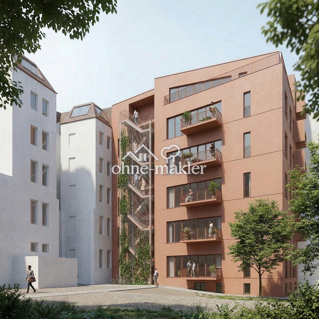 Direkt am Charlottenburger Schloss und dessen weitläufigem Park entsteht in zweiter Reihe die ROTE CHARLOTTE, ein Neubau mit fünf barrierefreien Familienwohnungen à 110 m² Wohnfläche bestehend aus einer großen Wohnküche, drei Schlafzimmern, Badezimmer und Gäste-WC. Alle fünf Parteien teilen sich zusätzlich das gesamte Dachgeschoss mit grosser Gemeinschaftsterrasse (33 m²), Gemeinschaftsraum (25 m²), Gäste-Wohnung sowie Sauna. Der hier genannte Preis bezieht sich auf die Wohnung im 3. OG inklusive der Anteile für die Gemeinschaftsflächen im Dachgeschoss (5.OG). Es stehen noch weitere Wohnungen im EG (HP), 1. OG, 2. OG und 4.OG zur Verfügung, die teils günstiger teils teurer sind - siehe Preisübersicht. Balkon, Garten, Keller, Dachterrasse, Fahrstuhl, Vollbad, Sauna, Gäste-WC, Barrierefrei, Parkett, Fliesen Bemerkungen: Es gibt immer nur eine Wohnung pro Etage. Alle Wohnungen von EG (Hochparterre) bis 4. Obergeschoss sollen aus Gründen der Statik sowie aus Kostengründen möglichst identische Grundrisse bekommen. Zentrum ist eine große Wohnküche mit anliegendem Balkon, drei Schlafzimmer, ein innenliegendes Badezimmer, ein Gäste-WC sowie ein großer Abstellraum. Deckenhöhe ist über 3m. Ein Fahrstuhl hält auf jeder Etage, sodass Barriere-Freiheit gegeben ist. Im Untergeschoss ist ein entsprechender Raum für den Anschluss einer Luftwärmepumpe vorgesehen, ebenso ein Abstellraum für Die Wohnungen sind alle nach Osten ausgerichtet, Gegenüber steht kein Gebäude (und auch in Zukunft wird hier kein Neubau entstehen), die Sonne scheint morgens direkt in die Räume. Wenn diese ab Mittag über den Zenit wandert, steht allen auf dem Dach eine Gemeinschaftsterrasse zur Verfügung. Diese grenzt an einen großen wettergeschützten Gemeinschaftsbereich mit Küche an, der für Co-Working, Versammlungen oder Festivitäten genutzt werden kann. Durch diesen Bereich erreicht man eine Gäste-Wohnung sowie eine Gemeinschaftssauna mit Duschbereich. Die Kosten für das gemeinschaftliche Dachgeschoss tragen alle fünf Wohnungen zu gleichen Teilen.Energieträger: Luft-/Wasserwärme