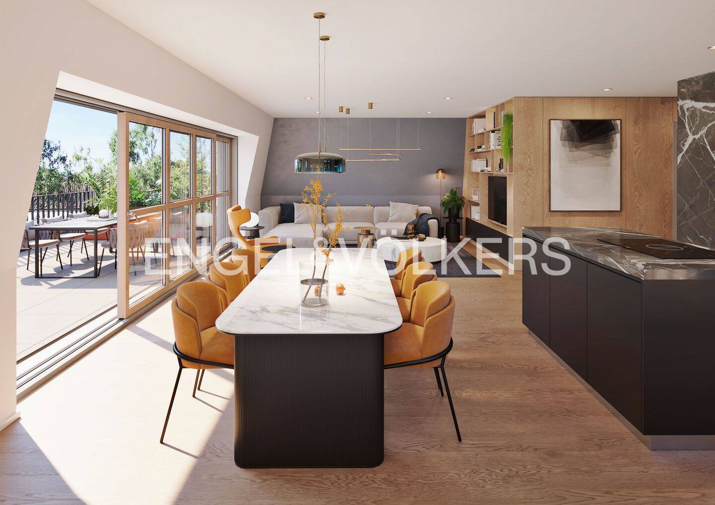 In einer der gefragtesten Wohnlagen Lindaus, eingebettet zwischen dem charmanten Aeschach und dem beliebten Bad Schachen, entsteht mit den "Villen im Wiesental" ein anspruchsvolles Neubau-Ensemble, das modernes Wohnen, stilvolle Architektur und nachhaltige Bauweise vereint. Die hier angebotene Penthousewohnung im Dachgeschoss von Haus A bietet auf rund 151m² Wohnfläche ein exklusives Zuhause für Menschen mit höchsten Ansprüchen an Komfort, Ästhetik und Energieeffizienz.Bereits beim Betreten der Wohnung eröffnet sich über eine großzügige Diele ein durchdachtes Raumkonzept. Das Herzstück bildet der offen gestaltete Wohn- und Essbereich mit integrierter Küche - ein lichtdurchfluteter Raum mit knapp 52m² Fläche, der durch großformatige Fenster und den direkten Zugang zur ca. 32,5m² großen Dachterrasse besticht. Die Terrasse ist nach Südwesten ausgerichtet und mit einer elektrisch betriebenen Kassettenmarkise inklusive Vario-Volant ausgestattet - ideal für sonnige Nachmittage und entspannte Abende mit Blick ins Grüne.Besonderes Augenmerk wurde auf die Gestaltung des privaten Rückzugsbereichs gelegt. Das Hauptschlafzimmer mit ca. 22m² ist nicht nur großzügig dimensioniert, sondern verfügt auch über einen integrierten Ankleidebereich, der nahtlos in das Raumkonzept übergeht. In direkter Nähe befindet sich das hochwertig ausgestattete Hauptbad mit Tageslicht, freistehender Badewanne, bodengleicher Walk-in-Dusche, Doppelwaschtisch und eleganten Armaturen namhafter Hersteller wie Duravit und Hansgrohe. Zwei weitere Zimmer mit ca. 12,9?m² und 10,2?m² eignen sich ideal als Kinder-, Gästezimmer oder Büro und machen die Wohnung auch für Familien und Berufstätige im Homeoffice attraktiv. Ein separates Gästebad mit Dusche und WC sorgt für zusätzliche Flexibilität. Der praktische Abstellraum mit Anschluss für Waschmaschine und Trockner ist funktional in die Wohnung integriert und sorgt für Ordnung im Alltag.Die technische Ausstattung erfüllt modernste Standards: Fußbodenheizung mit Einzelraumsteuerung, hochwertige Holz-Aluminium-Fenster mit 3-fach-Verglasung, elektrische Raffstores, Video-Türsprechanlage sowie auf Wunsch eine erweiterbare E-Mobilitätsinfrastruktur in der Tiefgarage. Zur Wohnung gehört ein großzügiger Kellerraum im Untergeschoss - perfekt geeignet zur Aufbewahrung von saisonalen Möbeln oder Sportausrüstung. Zusätzlich können zwei Tiefgaragenstellplätze (jeweils zzgl. 35.000 EUR) erworben werden.Ein wesentliches Merkmal dieser Immobilie ist die zukunftsweisende Energieversorgung. Die Beheizung erfolgt über hocheffiziente Luft-Wasser-Wärmepumpen, unterstützt durch eine leistungsstarke Photovoltaikanlage mit Batteriespeicher (10?kWp/10?kWh). Die Anlage produziert eigenen Strom für Heizung, Warmwasser und potenziell auch für Elektrofahrzeuge. Mit einem Endenergiebedarf von nur 17,9?kWh/(m²·a) erfüllt das Gebäude die Anforderungen eines KfW-Effizienzhauses 55 und erreicht die Energieeffizienzklasse A+. Neben deutlichen Einsparungen bei den Betriebskosten leistet dies einen wertvollen Beitrag zum nachhaltigen Wohnen.Dieses Penthouse steht für stilvolles, nachhaltiges Wohnen auf höchstem Niveau - ob als Hauptwohnsitz, Altersruhesitz oder wertbeständiger Zweitwohnsitz in einer der schönsten Lagen des Bodensees.