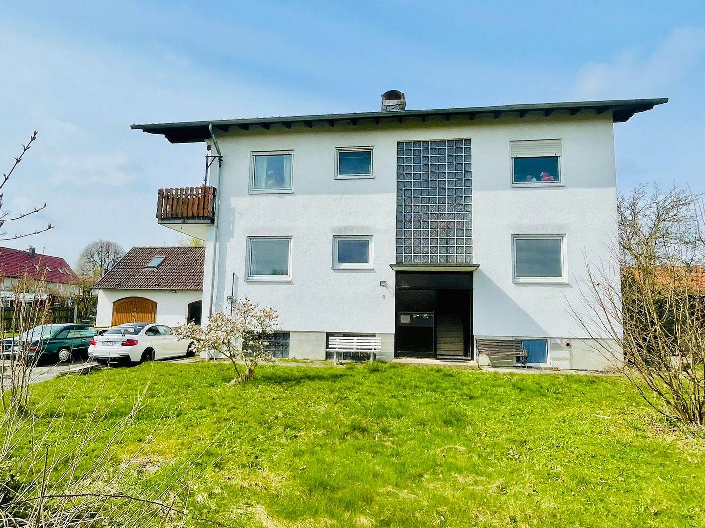 Das Haupthaus aus dem Jahr 1977 bietet auf drei Ebenen insgesamt ca. 360 m² Fläche. Das Dach wurde vor ca. 15 Jahren vollständig erneuert und befindet sich damit in einem zeitgemäßen Zustand. Im Erdgeschoss sowie im ersten Obergeschoss befinden sich jeweils vollwertige Wohnungen mit ca. 120 m² Wohnfläche. Die Obergeschosswohnung ist aktuell vermietet (Kaltmiete 600 €/Monat). Das Kellergeschoss umfasst ebenfalls ca. 120 m² und ist teilweise als Wohnraum nutzbar: Es verfügt über zwei Räume mit Tageslichtfenstern sowie eine Küche – ideal als weitere Nutzfläche oder Ausbauoption. Darüber hinaus befinden sich im Keller ein Lagerraum, ein Öllagerraum sowie der Heizungsraum.