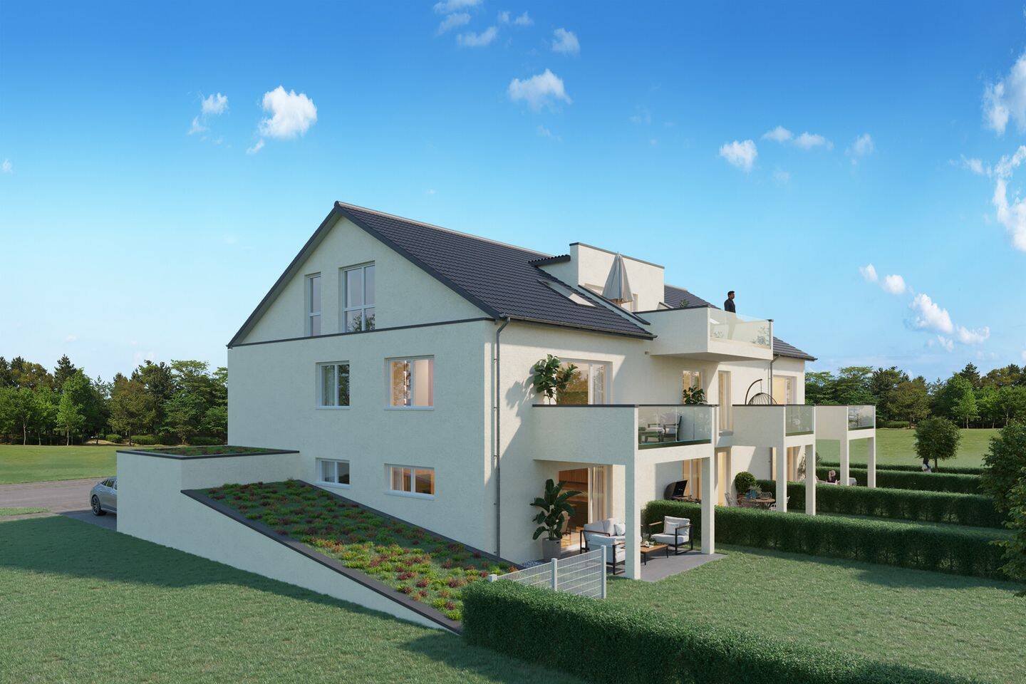Die Erdgeschosswohnung im Projekt "SMART URBAN" verbindet kompakte Wohnfläche mit hoher Alltagstauglichkeit und einem attraktiven Außenbereich. Auf rund 60 m² Wohnfläche befinden sich ein gut geschnittener Wohn-/Ess-/Kochbereich mit ca. 25 m², ein Schlafzimmer, ein Badezimmer, eine Diele sowie ein praktischer Abstellraum - ideal für Singles oder Paare, die eine moderne Wohnung mit Terrasse im Grünen suchen. Die nach Süden ausgerichtete Terrasse bietet einen geschützten Platz im Freien und erweitert den Wohnraum vor allem in der warmen Jahreszeit.Die Wohnung ist Teil eines zeitgemäßen Mehrfamilienhauses mit sieben Wohneinheiten und Tiefgarage. Das Gebäude wird als klimafreundliches Effizienzhaus 40 errichtet. Damit profitieren die Bewohner von einem sehr guten energetischen Standard, moderner Bauweise und voraussichtlich niedrigen Energieverbräuchen. Zur Wohnung gehören ein zugeordneter Kfz-Stellplatz (Stellplatz Nr. 7) sowie ein eigenes Kellerabteil mit ca. 6,6 m², das zusätzlichen Stauraum für den Alltag, Hobbys oder saisonale Gegenstände bietet. Eine hochwertige Ausführung nach den anerkannten Regeln der Technik, ein durchdachtes Schall- und Wärmeschutzkonzept sowie gestaltete Außenanlagen mit Wegen, Bepflanzung und gemeinschaftlich nutzbaren Bereichen runden das Gesamtbild ab und machen diese Erdgeschosswohnung zu einem attraktiven Angebot - sowohl für Eigennutzer als auch für Kapitalanleger.