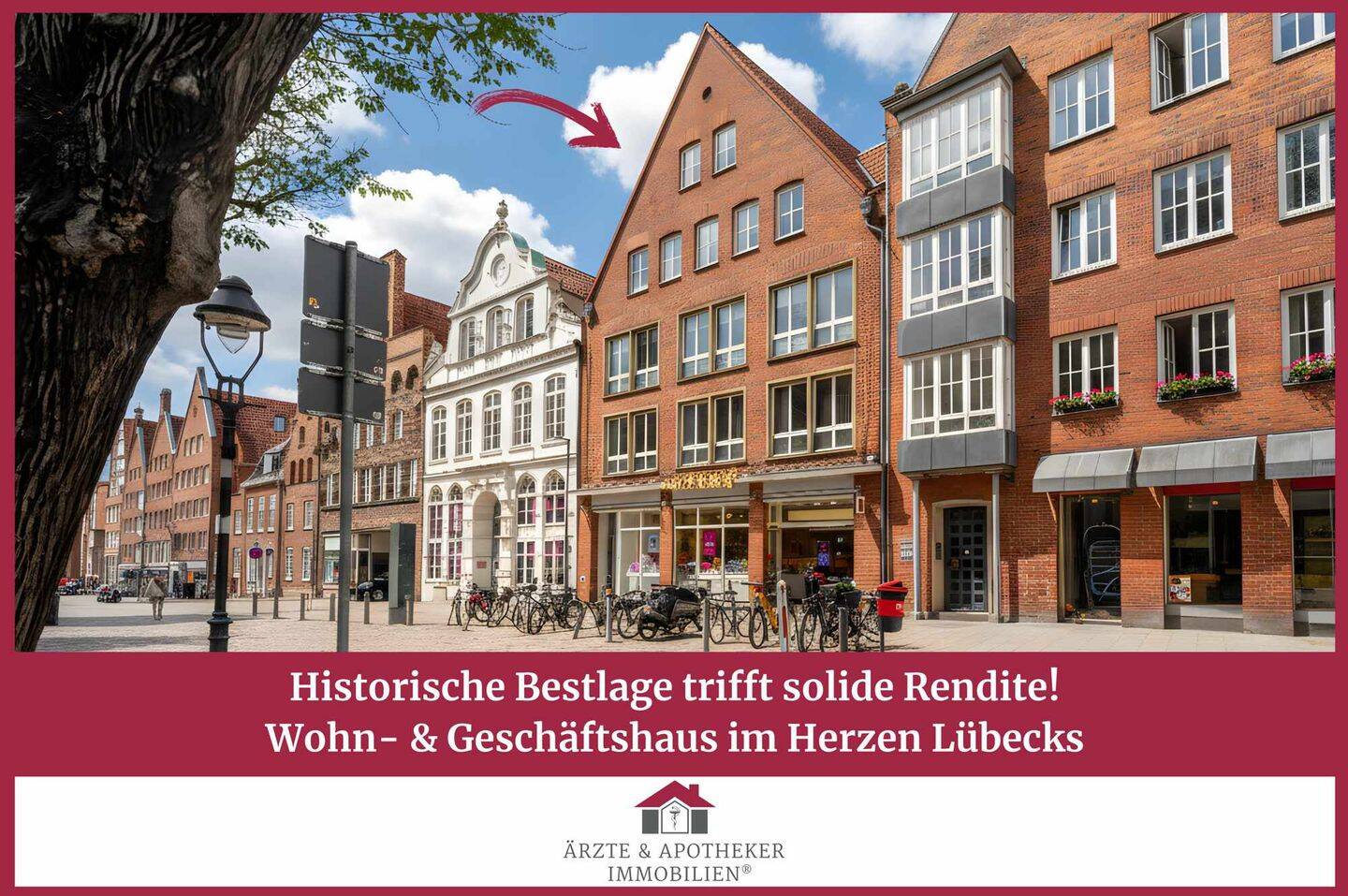 Eine attraktive Kapitalanlage mit stabilen Mieteinnahmen und ausgezeichneten Perspektiven - dieses gepflegte Wohn- und Geschäftshaus liegt in unmittelbarer Nachbarschaft zum renommierten Buddenbrookhaus im Herzen der UNESCO-Welterbestadt Lübeck. Die Fußgängerzone ist in nur einer Gehminute erreichbar, der Hauptbahnhof sowie die Autobahn A1 sind binnen weniger Minuten zu erreichen.Das Gebäude aus den 1950er Jahren in massiver Rotstein-Bauweise präsentiert sich durchgehend gepflegt und wurde kontinuierlich modernisiert. Ein repräsentatives Treppenhaus mit Massivtreppenanlage erschließt alle Etagen stilvoll.Im Erdgeschoss befindet sich ein großzügiges Ladengeschäft, langfristig bis 2031 vermietet - mit Verlängerungsoption. Darüber verteilen sich sechs Wohneinheiten unterschiedlicher Größen, von kompakten Apartments bis zu geräumigen Familienwohnungen. Die Hauptwohnung im ersten Obergeschoss wurde 2020 vollständig saniert. Mehrere Einheiten verfügen über Holzdielenböden; alle Wohnungen sind mit Einbauküchen ausgestattet.Die technische Ausstattung ist modern: Gas-Zentralheizung von 2022, Kunststofffenster mit Isolierverglasung, Gegensprechanlage mit Türöffner. Das vollunterkellerte Gebäude bietet zahlreiche Lager- und Nebenräume sowie ein zweigeschossiges Nebengebäude mit Doppelgarage. Besonders hervorzuheben sind die insgesamt 15 Pkw-Stellplätze, die in dieser Innenstadtlage einen erheblichen Mehrwert darstellen.Solide Bausubstanz, ausgewogener Nutzungsmix und langfristige Gewerbevermietung machen dieses Objekt zu einer erstklassigen Kapitalanlage mit nachhaltigen Wertsteigerungsperspektiven.