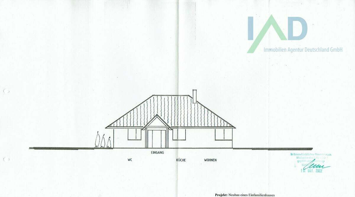 Das Grundstück bietet eine exzellente Möglichkeit, Ihren Traum vom Eigenheim zu verwirklichen. Es umfasst eine Fläche von 1.347 m² und ist nach Süden ausgerichtet, wodurch Sie von einer optimalen Sonneneinstrahlung profitieren. Mit einem attraktiven Blick ins Grüne ist dies eine idyllische Lage für Ihr neues Zuhause.Gemäß der Baubeschreibung ist das Wohnhaus mit einem roten Verblender zu versehen, während das Dach mit Ton- oder Betonpfannen in Anthrazit einzudecken ist. Es besteht jedoch die Möglichkeit, andere Farben und Baustoffe zu wählen, nach vorheriger Abstimmung mit dem Bauamt.Im Angebot ist eine Baugenehmigung für einen Winkelbungalow enthalten. Die Wohn- und Nutzfläche des Winkelbungalows beträgt im Erdgeschoss 155,87 m², zuzüglich einer großzügigen Terrasse mit 37,68 m². Das Dachgeschoss bietet zusätzlichen Raum zur vielfältigen Nutzung. Der umbaute Raum des Winkelbungalows beträgt 819 m³.
