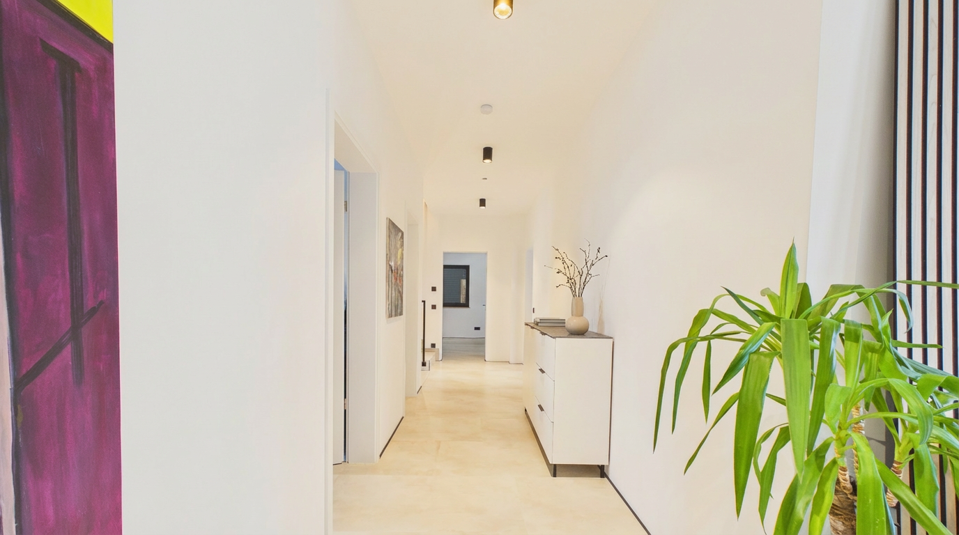 Willkommen in einem außergewöhnlichen Architektenhaus, das modernes Wohnen, innovative Technik und großzügige Raumgestaltung auf beeindruckende Weise verbindet.Dieses hochwertige Zweifamilienhaus wurde 2024/2025 in massiver Bauweise errichtet und überzeugt durch klare Architektur, lichtdurchflutete Räume und eine hochwertige Ausstattung bis ins Detail. Mit einer Gesamtwohnfläche von ca. 356 m² bietet die Immobilie vielfältige Nutzungsmöglichkeiten - vom großzügigen Einfamilienhaus über ein Mehrgenerationenkonzept bis hin zur Kombination aus Eigennutzung und Vermietung.Die Immobilie ist aktuell in zwei Wohneinheiten sowie eine Einliegerwohnung aufgeteilt. Die Einliegerwohnung verfügt über ca. 50 m² Wohnfläche, eine weitere Einheit über ca. 75 m² und bietet damit attraktive Möglichkeiten zur Vermietung oder zur Nutzung für Familie oder Gäste.Der offene Wohnbereich besticht durch große Fensterflächen, eine moderne Architektur und hochwertige Materialien. Ein besonderes Highlight ist die maßgefertigte Luxusküche mit Granit-Arbeitsplatte und hochwertigen BOSCH-Geräten, die erst 2024 installiert wurde.Die Immobilie befindet sich auf einem ca. 755 m² großen Grundstück in sonniger Hanglage und bietet einen schönen Ausblick sowie ein ruhiges Wohnumfeld.Energetisch überzeugt das Haus durch eine moderne Wärmepumpe, Photovoltaikanlage mit Speicher sowie den KfW-Effizienzhaus A+ Standard, wodurch niedrige Betriebskosten und eine nachhaltige Energieversorgung gewährleistet sind.Die Immobilie eignet sich sowohl für anspruchsvolle Eigennutzer als auch für Käufer, die eine Teilvermietung zur Unterstützung der Finanzierung in Betracht ziehen.HighlightsNeubau in massiver Bauweise (2024/2025)Ca. 356 m² WohnflächeAufteilung in bis zu drei Wohneinheiten möglichEinliegerwohnung ca. 50 m²Weitere Einheit ca. 75 m²Grundstück ca. 755 m² in sonniger Hanglage13,4 kWp Photovoltaikanlage mit SpeicherBuderus Wärmepumpe mit FrischwasserstationKNX Smart Home Steuerung mit Basalte-SystemLuxusküche mit Granitplatte & BOSCH-Geräten (Einbau 2024)Doppelgarage mit direktem Zugang ins HausDeckenhöhe bis ca. 2,80 mEnergieeffizienzklasse A+Kaufpreis ab 1.349.000 € möglichOptional mit zusätzlicher Einheit 1.650.000 €