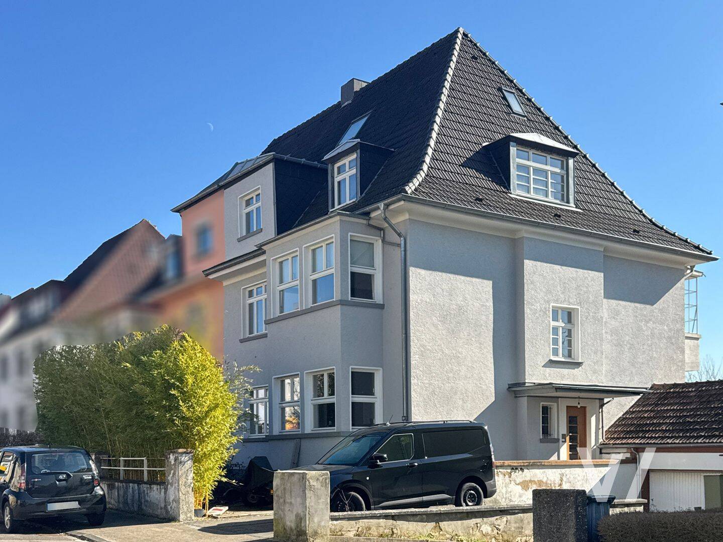 Die großzügige Doppelhaushälfte aus dem Jahr 1933 befindet sich auf einem ca. 410 m² großen Grundstück und überzeugt durch ihr großes Raumangebot und die unterschiedlichen Nutzungskonzepte. Die Immobilie lässt sich problemlos als Zwei- oder Dreifamilienhaus oder als großes Einfamilienhaus nutzen. Das Erdgeschoss bietet Ihnen einen lichtdurchfluteten Essbereich mit offener Küche und Zugang zur Terrasse (Südost), ein großes Wohnzimmer mit gemütlichem Erker sowie ein individuell nutzbares Zimmer mit separatem Zugang zur Sonnenterrasse. Auf dieser Ebene gibt es bereits eine Vorrichtung für ein Gästebad.Über das geräumige Treppenhaus gelangen Sie ins Obergeschoss. Hier stehen Ihnen ein Elternschlafzimmer mit Zugang zum Balkon (Südost), zwei individuell nutzbare Zimmer und ein Tageslichtbad zur Verfügung.Im Dachgeschoss befindet sich eine kleine Wohneinheit (Maisonette) mit offenem Wohn-Essbereich und Küche, zwei individuell nutzbaren Zimmern und einem Tageslichtbad. Über eine Wendeltreppe gelangen Sie ins ausgebaute Dachstudio.Ein Highlight ist der sonnige, pflegeleichte Garten (Südost). Das Untergeschoss mit direktem Zugang zum Garten, Musik-Proberaum und den unterschiedlichen Keller- und Abstellräumen sowie eine dazugehörige kleine Garage runden das Angebot dieser charmanten Immobilie ab. Die Immobilie wurde in den letzten Jahren stets renoviert und saniert. Diese Arbeiten sind jedoch noch nicht final abgeschlossen. Dadurch lassen sich Veränderungen ideal planen und umsetzen.