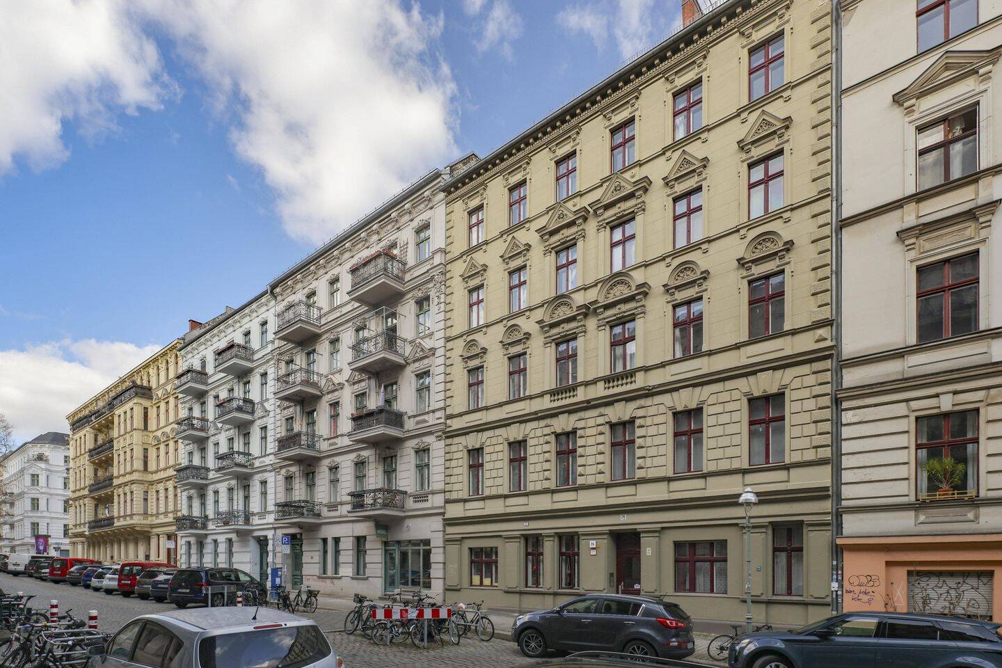 Dieses eindrucksvolle Mehrfamilienhaus aus dem Jahr 1893 befindet sich in absolut begehrter Lage im Herzen von Berlin-Kreuzberg - im beliebten Bergmannkiez, einer der gefragtesten Wohnlagen der Hauptstadt. Das Gebäude steht unter Denkmalschutz und verkörpert eindrucksvoll die architektonische Geschichte des späten 19. Jahrhunderts.Auf einem ca. 489 m² großen Grundstück erstreckt sich das klassische Berliner Altbauensemble mit einer vermietbaren Fläche von rund 1.140 m². Die Immobilie umfasst insgesamt 20 Wohneinheiten, von denen aktuell 19 Wohnungen vermietet sind. Die langjährige Mieterschaft spricht für die stabile Vermietbarkeit und die hohe Attraktivität des Standorts.Das Gebäude überzeugt durch zahlreiche historische Altbauelemente, die den besonderen Charme dieser Immobilie ausmachen. Hierzu zählen unter anderem originale Stuckleisten, Doppelkastenfenster aus Holz sowie die typische Altbauarchitektur mit großzügigen Raumhöhen.Die Wohnungen sind mit Gas-Etagenheizungen ausgestattet. Die Immobilie wurde über die Jahre hinweg solide instand gehalten, befindet sich jedoch in einem Zustand, der Potenzial für Modernisierungen und Wertsteigerungen bietet.Ein besonderes Entwicklungspotenzial bietet das nicht ausgebaute Dachgeschoss. Vorbehaltlich der Abstimmung mit den zuständigen Behörden und unter Berücksichtigung der denkmalschutzrechtlichen Auflagen, erscheint ein Ausbau des Dachgeschosses im Vorderhaus denkbar. Dies eröffnet zusätzliche Möglichkeiten zur Flächenerweiterung und nachhaltigen Wertsteigerung.Die Kombination aus historischer Substanz, begehrter Lage im Bergmannkiez und Entwicklungspotenzial macht diese Immobilie zu einer seltenen Gelegenheit für Investoren, die auf langfristige Wertstabilität und attraktive Perspektiven setzen.