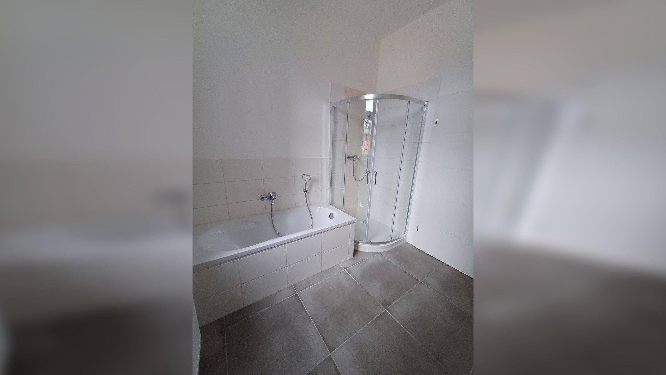 Das moderne Badezimmer ist hochwertig ausgestattet und bietet sowohl eine Badewanne als auch eine separate Dusche – ideal für Komfort und Flexibilität im Alltag.