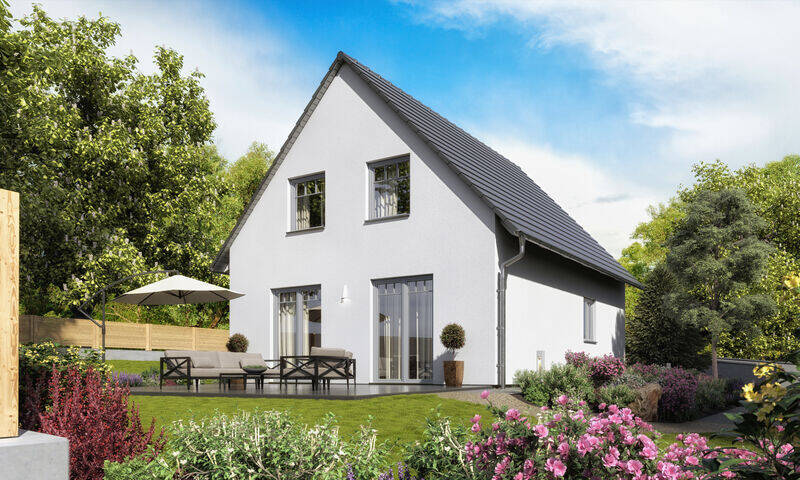 VIEL WOHNRAUM AUF KLEINER FLÄCHEDas Raumwunder 100 ist tatsächlich ein Wunder - auf nur 70 Quadratmetern Grundfläche zaubert es ca. 100 Quadratmeter Wohnfläche. Wohnfläche, die sich sehen lassen kann: lichtdurchflutete, freundliche Zimmer verleihen dem Haus eine attraktive Wohnatmosphäre auf zwei Ebenen. Im Erdgeschoss finden Sie ein geräumiges Wohnzimmer mit Blick in den Garten, eine gemütliche Essecke und eine große Küche. Das Dachgeschoss ist ideal ausgerichtet für Schlaf- und Kinderzimmer, Büro oder Gästezimmer. Das Bad ergänzt diese Wohnebene optimal. Wirklich ein Raumwunder für die ganze Familie!Auf Wunsch ist dieses Haus auch mit Keller sowie als EnergieSparhaus erhältlich.Der Preis für Ihr schlüsselfertiges Haus beträgt 237.350€. Als Grundstückspreis wurden 370.000€, zzgl. Baunebenkosten berücksichtigt.Ähnliche Angebote