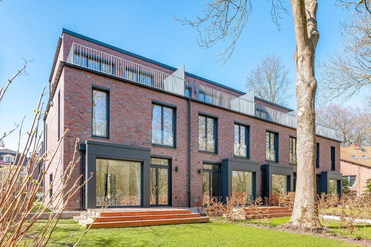 Ruhig gelegen und dennoch urban: Dieses stilvolle Neubau Townhouse verbindet modernes Wohnen mit einem unmittelbaren Bezug zur Natur. Klare Linien, großzügige Glasflächen und der unverbaute Blick ins angrenzende Biotop verleihen dem Haus eine besondere Ausstrahlung - ideal für alle, die Wert auf Ruhe und Qualität legen.Das Erdgeschoss bildet das Herzstück des Hauses: Ein offen gestalteter Wohn- und Essbereich mit bodentiefen Fenstern schafft eine helle, einladende Atmosphäre. Die Terrasse schließt direkt an und eröffnet einen freien Blick in die natürliche Umgebung - ein fließender Übergang zwischen Innenraum und Natur. Die integrierte Küche fügt sich nahtlos ein und wird zum Mittelpunkt des gemeinsamen Lebens.Im Obergeschoss erwarten Sie zwei flexibel nutzbare Räume, die sich perfekt als Kinderzimmer, Gästezimmer oder Arbeitszimmer anbieten. Ergänzt wird diese Ebene durch ein großzügiges Bad sowie praktische Stauraumlösungen, die den Alltag angenehm strukturieren.Das Dachgeschoss ist als privater Rückzugsbereich konzipiert: Ein geräumiges Schlafzimmer mit eigenem Bad und Zugang zu einer weiteren Außenfläche schafft eine ruhige, abgeschlossene Wohnwelt. Große Fenster sorgen auch hier für viel Licht und eine freundliche Atmosphäre.Die hochwertige Klinkerfassade, kombiniert mit moderner Architektur und klarer Formsprache, unterstreicht den zeitlosen Charakter des Hauses. Zwei Außenbereiche, die direkte Lage im Grünen und die intelligente Raumaufteilung über drei Ebenen machen dieses Townhouse zu einem besonderen Zuhause.Perfekt für alle, die naturnah wohnen möchten, ohne auf die Annehmlichkeiten der Stadt zu verzichten.Die Ausstattungsdetails auf einen Blick:Nach Westen ausgerichtete Terrasse und DachterrasseTerrasse mit elektrischem SonnenmarkisenanschlussBodentiefe Fenster für lichtdurchflutete RäumeDreifach verglaste HolzfensterAbschließbare FenstergriffeEichenparkett, LandhausdielenDornbracht ArmaturenGroßformatige Fliesen, bodengleiche DuschenFußbodenheizung mit EinzelraumsteuerungVerbundsicherheitsglas im EGKontrollierte Be- und Entlüftung mit WärmerückgewinnungGegensprechanlage, Vorrüstung für eine AlarmanlageLuft-Wärme-Pumpe und PhotovoltaikanlageAußenstellplatz zusätzlich erwerbbarFertigstellt und bezugsfertig