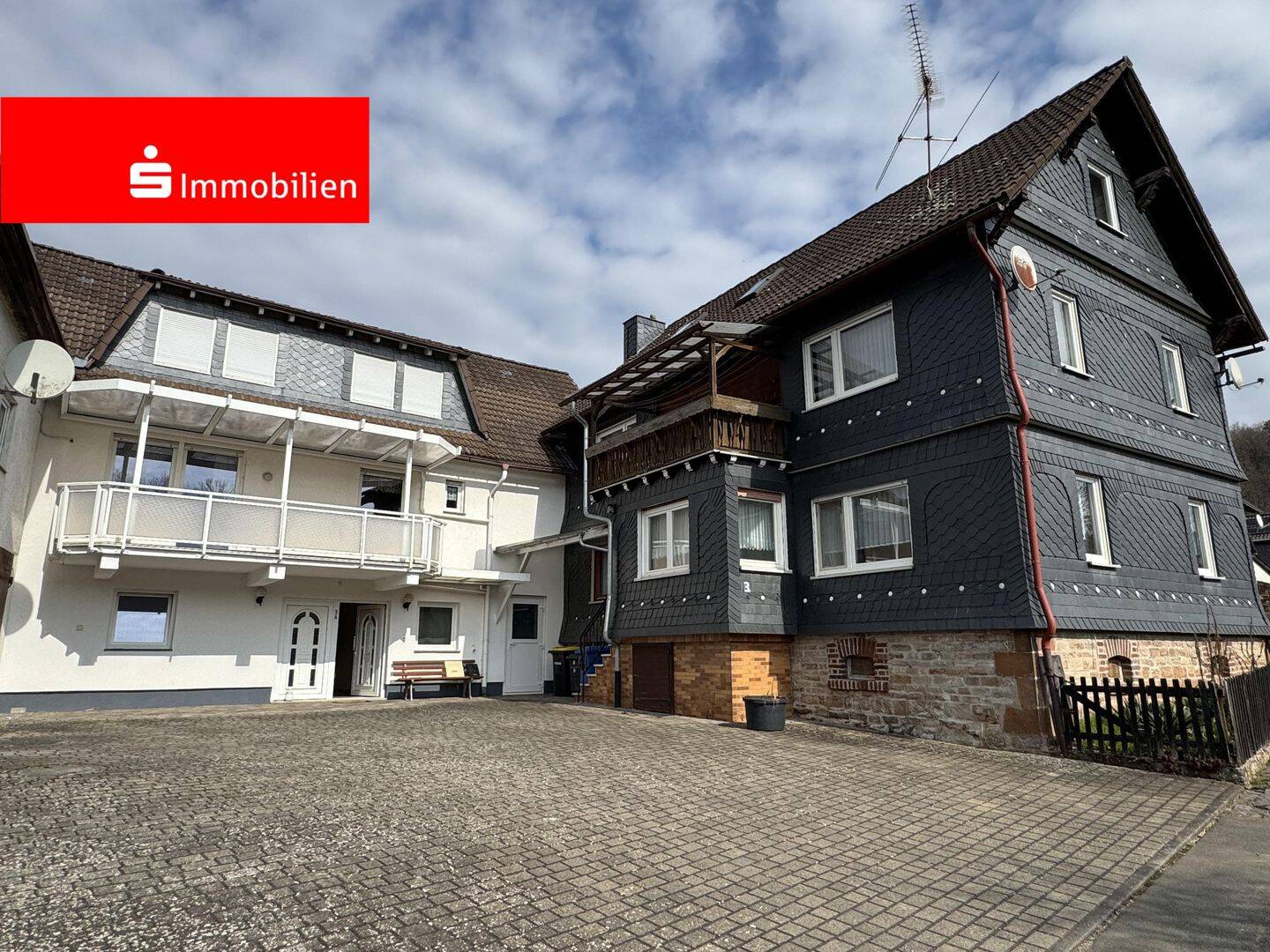 In Wetter-Oberndorf können wir Ihnen dieses interessante Zweifamilienhaus zum Kauf anbieten.Die Immobilie eignet sich perfekt für ein Zusammenleben zweier Familien oder mehrerer Generationen. Die beiden "Häuser" sind bereits mittels Teilungserklärung getrennt, was Ihnen viele Möglichkeiten bei der späteren Vertragsgestaltung bietet.Das ehemalige Bauernhaus wurde um ca. 1900 erbaut. Stets gepflegt verfügt es über eine Wohnfläche von ca. 175 m², welche sich auf 5 Zimmer, Küche und Bad über drei Etagen verteilt. Ab dem Jahr 2000 wurden die Fenster erneuert sowie das Bad saniert. Erst in 2023 wurde zudem die Fassade teilweise neu verschiefert.Platz zum Abstellen und Lagern finden sie in diesem Gebäude im Kellergeschoss.Der ehemalige Stall daneben wurde ab dem Jahr 2000 zu Wohnraum umgebaut.Hier verteilen sich aktuell ca. 126 m² Wohnfläche auf 4 Zimmer, Küche und zwei Bäder. Weitere Platzreserven befinden sich im Dachgeschoss. Die Anschlüsse wurden damals bereits nach oben gelegt. Das Raumangebot reichte seinerzeit aber aus und der geplante Ausbau wurde dementsprechend nicht mehr ausgeführt. Die Fläche beträgt ca. 60 m². Das Erdgeschoss dient in diesem Gebäude zum Großteil als Nutzfläche und kann für Hobbys oder auch als Werkstatt genutzt werden.Ein weiteres Nebengebäude, welches mittlerweile als Garage für 2 PKWs dient rundet das Platzangebot auf dem 599 m² großen Grundstück ab.Als Zugabe bekommen Sie noch das 268 m² große Gartengrundstück, welches fast direkt an das Hausgrundstück grenzt und sich perfekt für Kinder zum Spielen eignet. Haben wir Ihr Interesse geweckt? Für weitere Informationen zu der Immobilie kontaktieren Sie uns bitte über die entsprechende Schaltfläche. Wir senden Ihnen dann das ausführliche Web-Exposé per Email zu, das Ihnen nach vollständigem Abruf, u.a. nähere Informationen zur Lage und Grundrissen sowie weitere Bilder der Immobilie bietet. Gerne stellen wir Ihnen daraufhin die Immobilie persönlich vor!