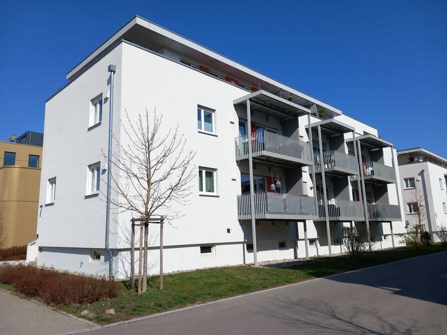 Die gut geschnittene, helle Wohnung befindet sich im Hochparterre in einem gepflegten, modernen Mehrfamilienhaus. Der Erstbezug in dieser Wohneinheit war im April 2022.Einkaufsmöglichkeiten des täglichen Bedarfs, Schulen, Ärzte sind fußläufig in kürzerster Zeit zu erreichen.Im Kaufpreis enthalten sind ein Außenstellplatz (F5) mit 12.000€ und ein überdachter Stellplatz mit 22.000€.Merkmale:gute Einteilung und Wohlfühlcharaktergepflegte, saubere Wohnanlagegroßer überdachter BalkonAußenstellplatzüberdachter Stellplatz mit direkten Zugang ins eigene Kellerabteilein abgeschlossenes Kellerabteil Wärmeerzeuger Holzpellets Fahrradraum Lift Hausmeister und hier ansässige HausverwaltungAufteilung der Wohnung: (siehe Grundriss bei den Bildern)Eingang / FlurWohnen mit offener Küche und zwei Zugängen zum BalkonSchlafenArbeitszimmer / KinderzimmerBad mit barrierefreier Dusche (einseitig komplett verglast), Waschbecken, WC, Waschmaschinenstellplatz und FensterAbstellraumMonatliches Hausgeld laut 2026 Wirtschaftsplan: 210€Alle Angaben und Unterlagen stammen vom Eigentümer. Unser Maklerbüro übernimmt keine Haftung auf deren Vollständigkeit und Richtigkeit.
