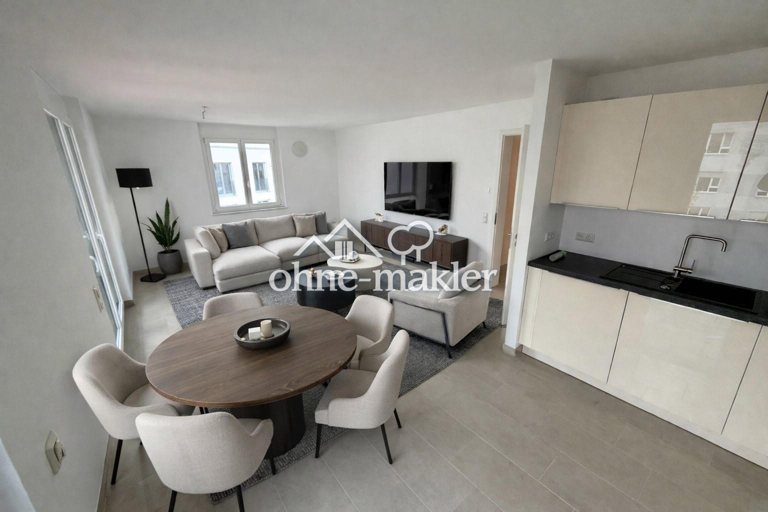 Hochwertig ausgestattete 2-Zimmer-Wohnung mit ca. 60,5 m² Wohnfläche und moderner Einbauküche im lichtdurchfluteten Wohn- und Essbereich. Optimal geschnittener Grundriss und hervorragende Lage in Unterschleißheim.