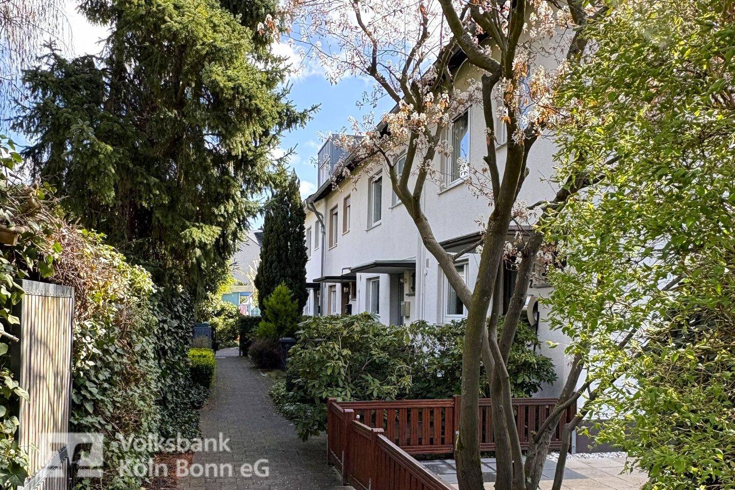 Das Reihenmittelhaus befindet sich in einem ruhigen Wohngebiet von Köln-Weiß und wurde 1972 erbaut. Das Grundstück umfasst 170 m², die Wohnfläche beträgt rund 93 m².Beim Betreten des Erdgeschosses gelangt man zunächst in die Diele. Von hier aus öffnet sich der Wohn- und Essbereich großzügig zum Garten hin und führt direkt auf die mit einer Markise ausgestatteten Terrasse. Der gepflegte Garten ist liebevoll angelegt und verfügt über zwei praktische Gartenhäuser. Eine offene Küche sowie ein separates Gäste-WC vervollständigen das Raumangebot auf dieser Ebene.Im Obergeschoss stehen zwei Zimmer zur Verfügung. Das größere Zimmer entstand aus zwei früheren Einzelräumen und kann bei Bedarf problemlos wieder geteilt werden, sodass ein zusätzliches Zimmer entsteht. Vom derzeitigen Hauptschlafzimmer aus gelangt man auf den Balkon. Ebenfalls auf dieser Etage befindet sich ein Tageslichtbad mit Badewanne.Eine feste Treppe führt in das Dachgeschoss, das gedämmt, mit Holz verkleidet und mit Laminat- sowie Teppichboden ausgestattet ist. Die Böden im Erd- und Obergeschoss sind vollständig gefliest.Der ebenfalls geflieste Keller bietet drei zusätzliche Räume: einen Werkstattraum, eine Waschküche sowie einen Partykeller mit Bar. Zudem befinden sich dort die Gastherme und ein Abstellbereich unter der Treppe. Im Raum der Gastherme befindet sich weiterhin eine Warmwasserdusche.Das Haus liegt in einem Stichweg einer Sackgasse und bietet dadurch eine besonders ruhige Wohnlage. Öffentliche Parkmöglichkeiten sind etwa 30 Meter entfernt im Wendehammer vorhanden. Das Grundstück ist zudem über den Garten zugänglich.Ähnliche Angebote
