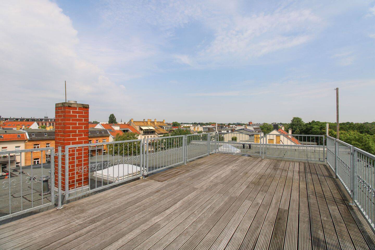 Diese außergewöhnliche Dachgeschoßwohnung befindet sich in Leipzig, im schönen Stadtteil Schleußig, direkt am Clara-Zetkin-Park. Das Highlight der Wohnung ist die großzügige Dachterrasse mit Blick in den Park und über den beliebten Stadtteil Schleußig.Die angebotene Dachgeschosswohnung verfügt über eine Wohnfläche von ca. 161,96 m², verteilt auf 5 Zimmer inkl. Wohnküche (ohne EBK), 2 Bäder, Abstellkammer, einen Balkon sowie die Dachterrasse.Der PKW-Stellplatz (Carport) im Hof wird für 80 €/monatlich mit vermietet.Die Wohnung wird für einen Zeitraum von ca. 2 bis 3 Jahren vermietet.Ähnliche Angebote
