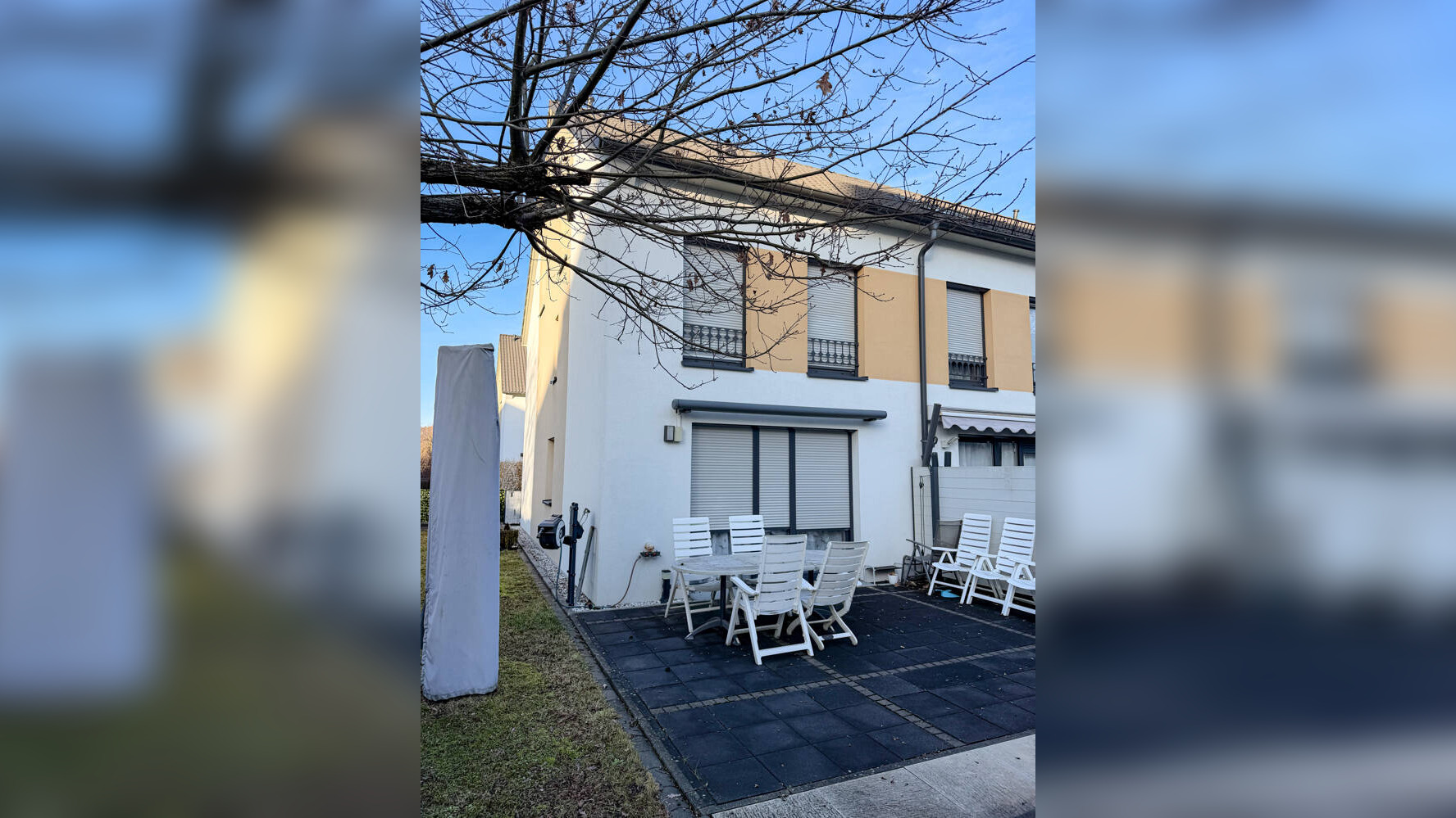 Dieses topgepflegte Reiheneckhaus mit Garten und Terrasse überzeugt durch seine hochwertige Ausstattung und die zentrale Lage. Es bietet ideale Voraussetzungen, um Ihren Traum vom Eigenheim zu verwirklichen.Die als KfW-70-Effizienzhaus errichtete Immobilie befindet sich am Rand eines modernen Wohnparks und erstreckt sich über drei Etagen. Die massive Betonbauweise mit Fassadendämmung sorgt für eine hervorragende Wärmeisolierung und spiegelt sich positiv im niedrigen Energiebedarf sowie in geringen Nebenkosten wider.Im Erdgeschoss empfängt Sie ein einladender Eingangsbereich mit Garderobe sowie ein Gäste-WC. Ebenfalls auf dieser Ebene befindet sich die hochwertig ausgestattete Küche, die offen in den Essbereich integriert ist und ein modernes Wohngefühl vermittelt. Das angrenzende Wohnzimmer bietet direkten Zugang zur sonnigen Terrasse sowie zum bereits angelegten Garten, der zum Entspannen und Verweilen einlädt.Im Obergeschoss befinden sich das geräumige Schlafzimmer sowie ein Kinderzimmer. Das hochwertig ausgestattete Badezimmer auf dieser Ebene überzeugt mit einer luxuriösen Whirlpool-Badewanne sowie einer bodentiefen Regendusche und schafft damit einen privaten Wellnessbereich.Das Dachgeschoss bietet den Zugang zum Spitzboden sowie ein weiteres, modernes Badezimmer mit bodentiefer Dusche. Zusätzlich stehen hier zwei helle Zimmer zur Verfügung, die flexibel als Kinderzimmer, Homeoffice, Ankleide oder Gästezimmer genutzt werden können. Maßgefertigte Einbauschränke bieten hier optimal integrierten Platz für Waschmaschine und Trockner und sorgen für ein aufgeräumtes, funktionales Raumkonzept. Der umzäunte Garten bietet dank einer hohen Hecke entlang der Grundstücksgrenze viel Privatsphäre. Die Terrasse ist mit einer Sonnenmarkise ausgestattet. Außerdem sorgen zwei praktische Gartenhäuser für zusätzlichen Stauraum. Direkt vor dem Haus stehen zwei fest zugewiesene KFZ-Stellplätze zur Verfügung