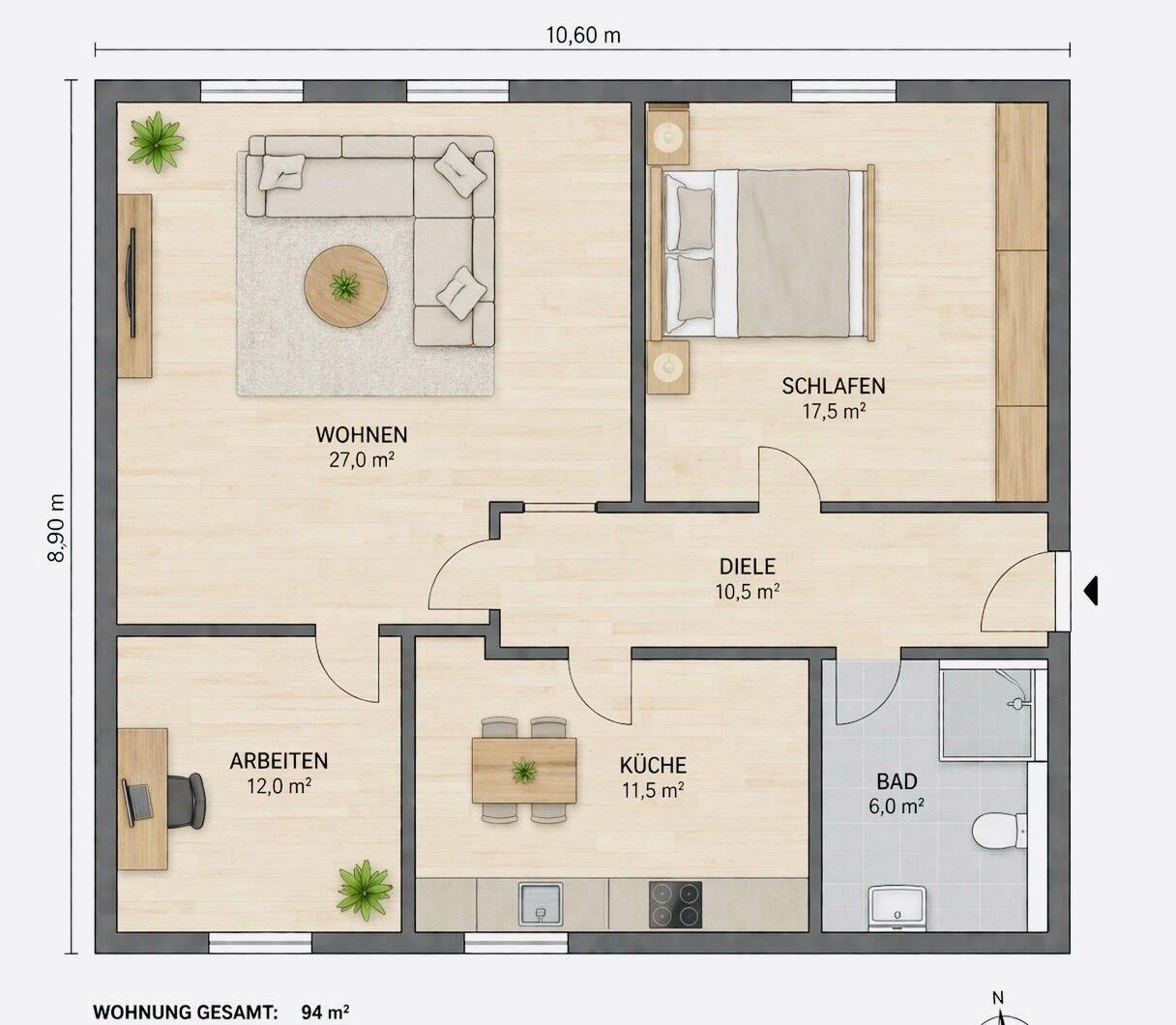 Diese großzügige und gut geschnittene 3-Zimmer-Wohnung mit ca. 94 m² Wohnfläche befindet sich im Souterrain eines gepflegten Hauses und überzeugt durch eine durchdachte Raumaufteilung sowie einen direkten Zugang zum Garten über die eigene Terasse. Das Haus wurde 2025 komplett energetisch überarbeitet (neues Dach, Außendämmung, neue Fenster, Wärmepumpe und Lüftungsanlage). Zur Wohnung gehört ein Stellplatz sowie ein Kellerabteil. Der helle Wohnbereich bildet das Herzstück der Wohnung und bietet ausreichend Platz für eine gemütliche Sofalandschaft sowie einen Essbereich. Von hier aus gelangen Sie direkt auf den Außensitzplatz, der zum Entspannen im Freien einlädt. Auch das Schlafzimmer verfügt über einen direkten Zugang zum Außenbereich. Neben dem Schlafzimmer steht ein weiteres Zimmer zur Verfügung, das sich ideal als Arbeitszimmer, Gästezimmer oder Hobbyraum nutzen lässt. Die separate Küche bietet Platz zum Kochen. Das Badezimmer ist funktional ausgestattet und verfügt über eine Dusche sowie ein WC. Raumaufteilung: Wohnzimmer Schlafzimmer Arbeitszimmer / Gästezimmer Küche Badezimmer mit Dusche und WC Diele / Flur Highlights: ca. 94 m² Wohnfläche Energieeffizienz Haus Standard 75 Direkter Gartenzugang/Gartennutzung Außensitzplatz mit Zugang vom Wohn- und Schlafzimmer ruhige Lage im Souterrain verfügbar ab 01.07.So funktioniert es