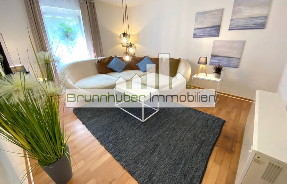Diese gemütliche, aufwändig renovierte Dreizimmerwohnung kann ihr neues Zuhause sein. Mit viel Liebe zum Detail wurden die Original Holztüren aufgearbeitet und der ursprüngliche Dielen-und Parkettboden saniert. Im Erdgeschoß eines kleinen Mehrfamilienhauses mit nur drei Parteien gelegen kommen Sie ebenerdig in den Garten und zur Garage (optional anmietbar) Der beliebte Ortsteil Gartenstadt ist zentrumsnah und gut an Autobahn und Innenstadt angebunden. In der modern ausgestatteten und großzügigen Küche befindet sich ein Essplatz. Als besonderes Highlight steht Ihnen eine eigene Terrasse, die Sie von der Küche aus erreichen, ebenso wie ein kleiner Garten zur Nutzung, bereit. Das Wohnzimmer lädt zum kuscheln auf der Couch ein und hat Stauraum für Ihre persönlichen Gegenstände. Lange TV-Abende genießen Sie auf dem Smart-TV. -Neben einem Doppelbett befindet sich im Schlafzimmer ein geräumiger Schrank, eine Sitzgelegenheit, aber auch Wäscheständer und Bügelbrett. Das zeitlos in weiß geflieste Badezimmer mit Fenster verfügt über eine Badewanne. Im kleinen Gäste- oder Arbeitszimmer können Sie Ihrer Tätigkeit auch mal im Homeoffice nachgehen.In den Wohnräumen liegt Parkett und Dielenboden - was eine angenehme Atmosphäre garantiert. Nicht zuletzt durch die geschmackvolle Möblierung hat man in den Räumen ein behagliches Wohngefühl. Es wird Ihnen an nichts fehlen!Zu der Wohnung gehört auch eine Waschküche (mit Waschmaschine und Trockner) und ein Kellerabteil.Bei der Möblierung wurde auf Funktionalität und Design geachtet. Ihr neues Zuhause ist mit allem ausgestattet, was Sie für ein angenehmen Aufenthalt brauchen. Sie bringen nur Ihren Koffer mit Ihren persönlichen Gegenständen mit.Weitere Bilder sowie den 3D Rundgang zur Wohnung finden Sie hier: https://www.brunnhuber-immobilien.de/immobilie/205-1/