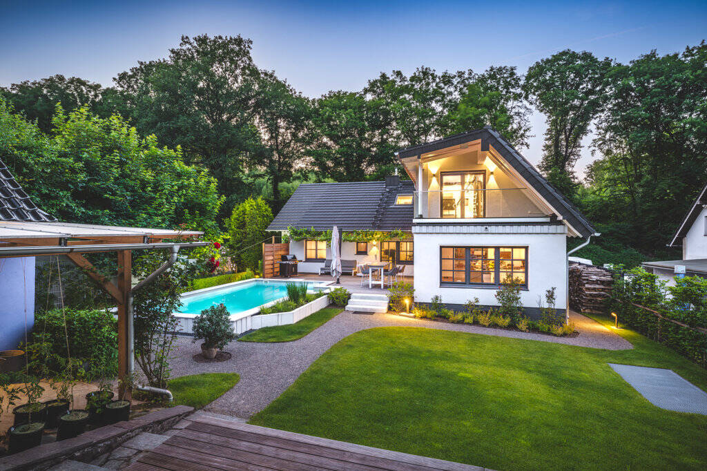 Dieses beeindruckende, frei stehende Einfamilienhaus erfuhr in den letzten sechs Jahren umfassende Sanierungs- und Modernisierungsmaßnahmen, bei denen wichtige technische Installationen auf den neuesten Stand gebracht und das Dach ausgebaut wurden. Sowohl die Gebäudetechnik, als auch die Außenhülle des Gebäudes wurden umfassend energetisch verbessert, sodass die Immobilie nun modernen energetischen Standards entspricht und Ihnen ein höchst komfortables und zeitgemäßes Wohnen ermöglicht. Die wesentlichen Modernisierungsdaten sind:.2021-22: Dacherweiterung und Neueindeckung.2022: Neue Badezimmer und Installation der PV-Anlage.2023: Neue Sauna, Fassade, Haustüre und neue Garagentore.2024: Pool und Gartenanlage.2025: Gebäudedränage und Anlage des VorgartensAufteilung: Durch ein großzügiges Entrée mit Gäste-WC erreichen Sie den Wohnbereich, an den sich die Küche anschließt. Ein Schlafzimmer mit Ankleide und ein geräumiges Tageslichtbad ergänzen das Erdgeschoss.Zwei Schlafzimmer, ein weiteres Bad und der neu geschaffene Fitnessraum mit Balkon befinden sich im Dachgeschoss. Dieses großzügige Anwesen bietet seinen Nutzern ein funktionales, modernes Wohnen in einer idyllischen Waldrandlage. Der Garten in Süd-Ausrichtung mit Nutz- und Zierflächen, altem Baumbestand, einem Pool und weiteren Annehmlichkeiten, sorgt für eine beneidenswerte Lebensqualität. WICHTIGE HINWEISE:.Der jetzige Eigentümer strebt eine weitgehende persönliche Veränderung an und möchte gerne wesentliche Einrichtungsgegenstände im Objekt belassen, die im Kaufpreis enthalten sind. Eine Verpflichtung des Käufers zur Übernahme besteht nicht, dementsprechend würde der Kaufpreis nach Verhandlung angepasst. Eine Liste dieser Gegenstände erhalten Sie gerne. Bitte sprechen Sie Ihre Ansprechpartnerin darauf an..Die Ausstattung des Gebäudes wird im unteren Teil unseres Exposés nicht komplett aufgeführt, dies würde den Rahmen eines Exposés sprengen. Auch hierzu gibt es eine separate Liste, die Ihnen Ihre Ansprechpartnerin gerne zur Verfügung stellt.