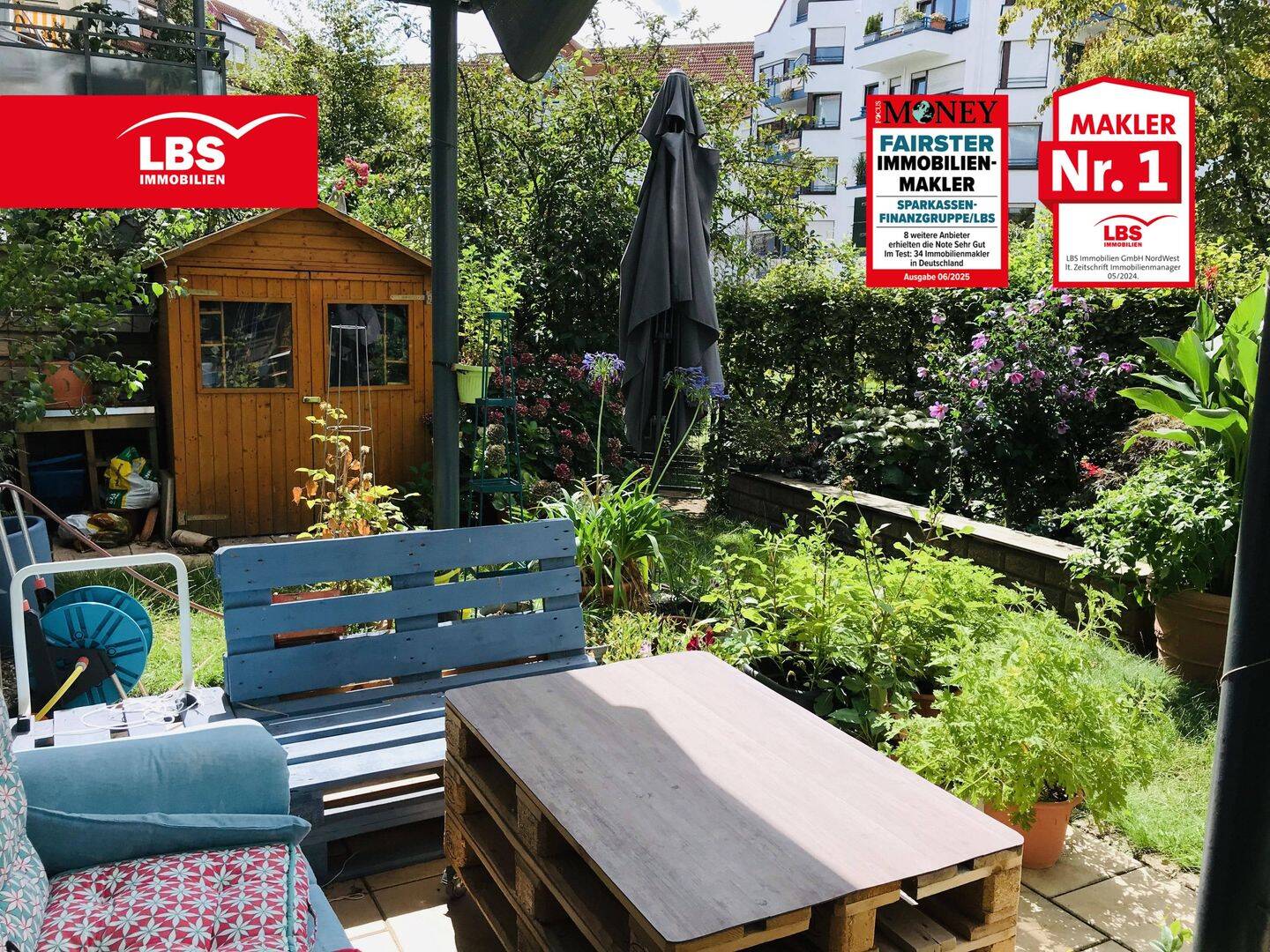 Die Wohnung befindet sich, zum Innenhof gelegen, im Erdgeschoss eines gepflegten Mehrparteienhauses. Die praktische Raumaufteilung entnehmen Sie bitte dem beigefügten Grundrissplan. Der liebevoll angelegte Gartenbereich zur Alleinnutzung mit der großzügigen Terrasse macht Ihr neues Zuhause zur zentrumsnahen Wohlfühloase! Ein mit dem Aufzug bequem zu erreichender Tiefgaragenstellplatz und Kellerraum runden dieses besondere Immobilienangebot ab.Ähnliche Angebote